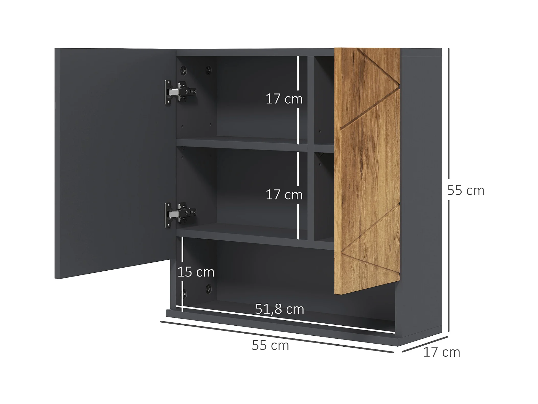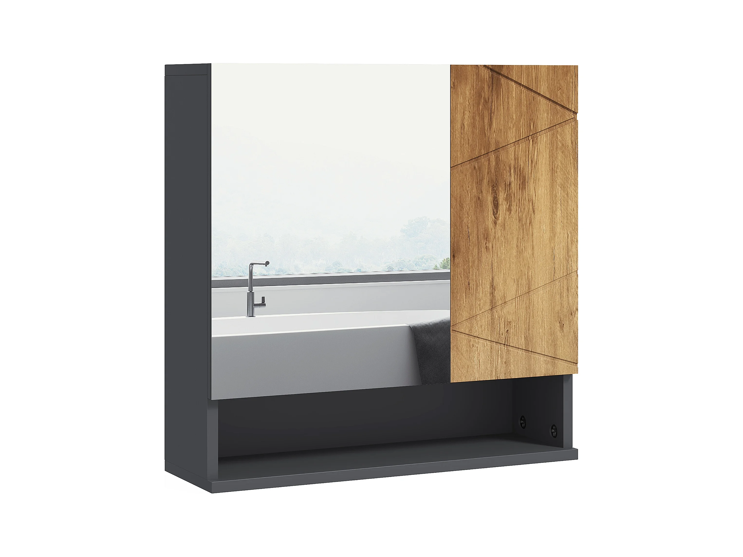 Armoire miroir de salle de bain - 2 portes, 2 étagères, niche - anthracite aspect bois