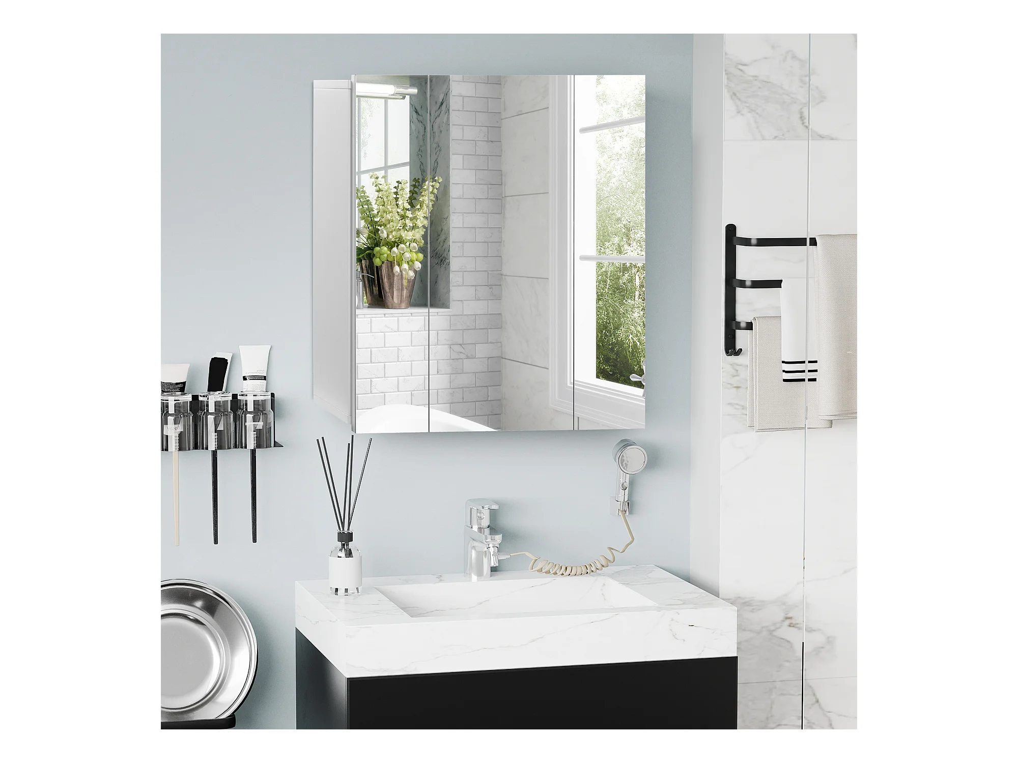 Armoire murale miroir de salle de bain - 2 portes, étagères, niche - dim. 54L x 15,2l x 55,3H cm - MDF blanc