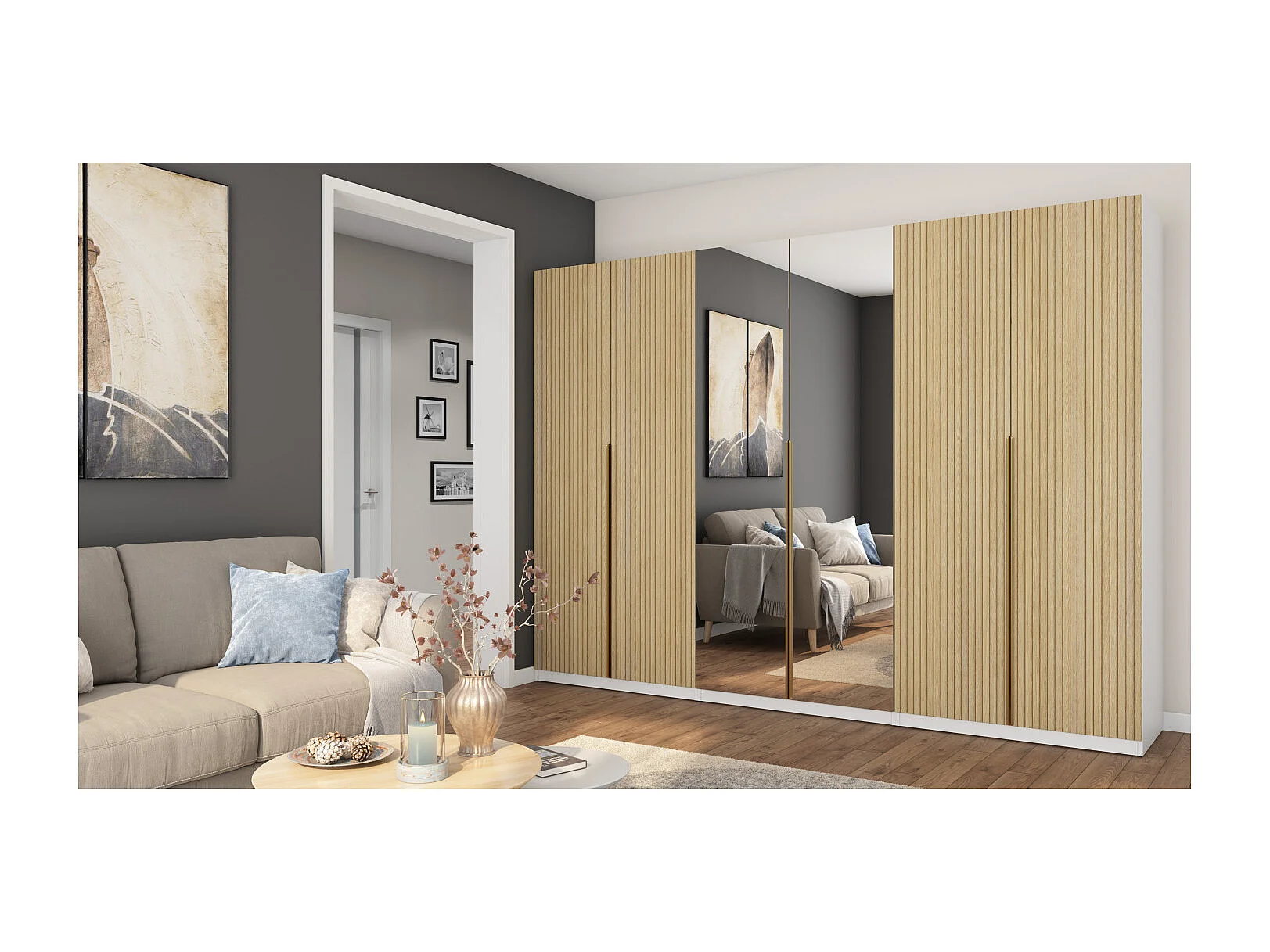Armoire moderne 300 × 220 cm – avec penderie, étagères intérieures et tiroirs spacieux extérieurs, modulable Avec miroir