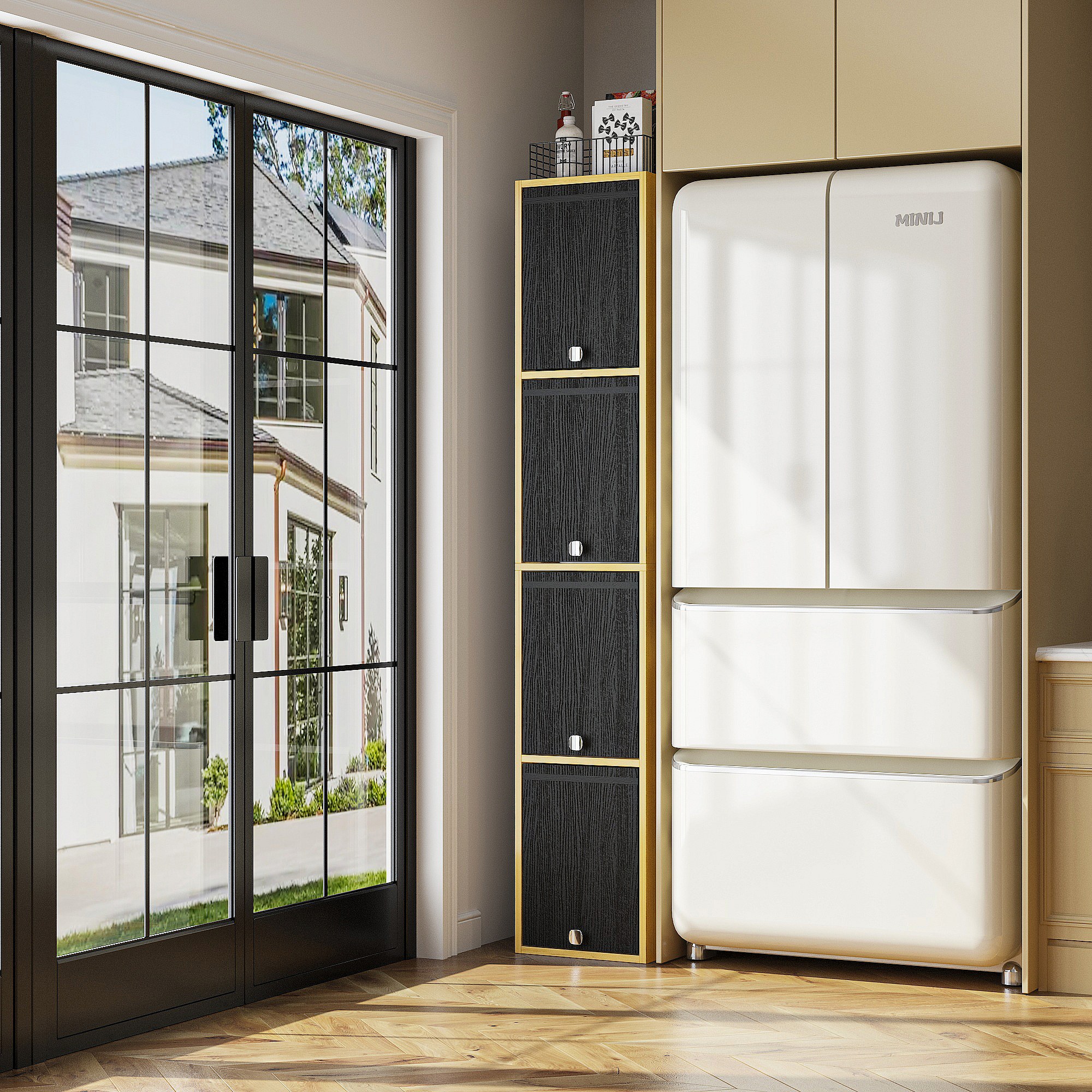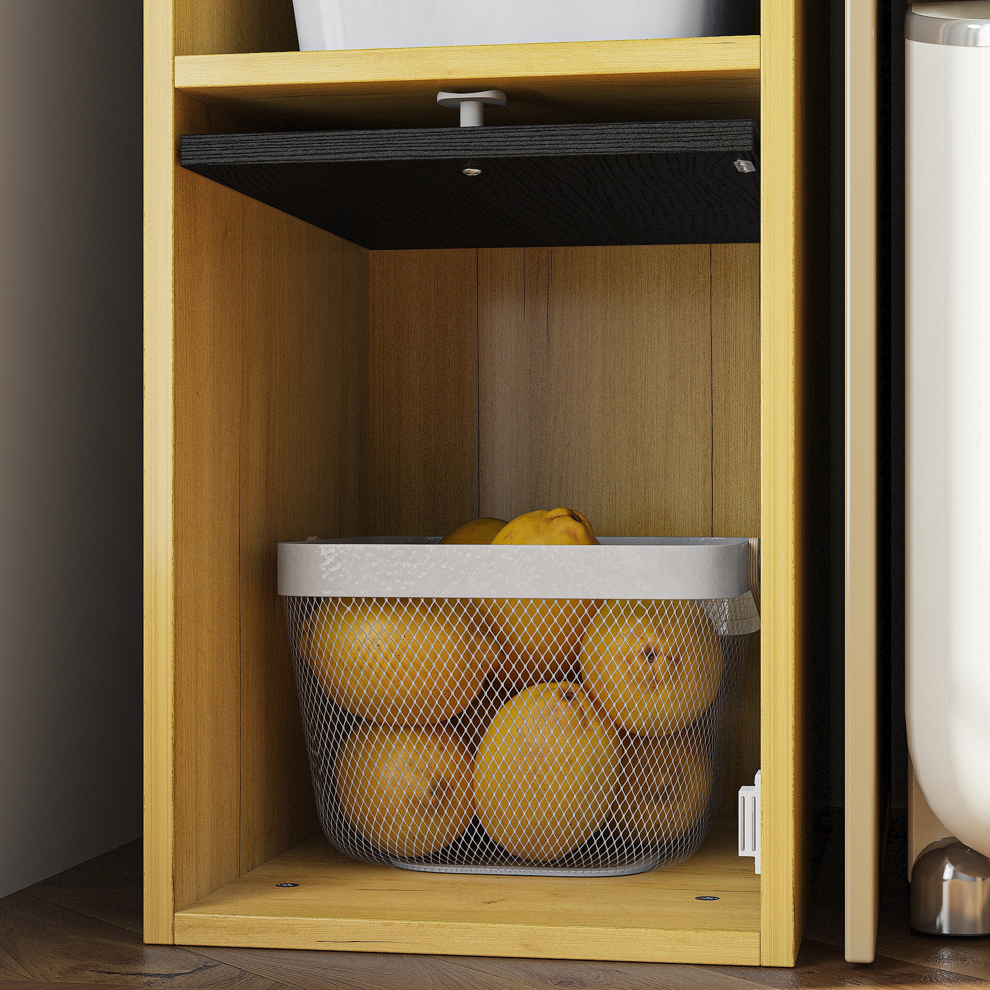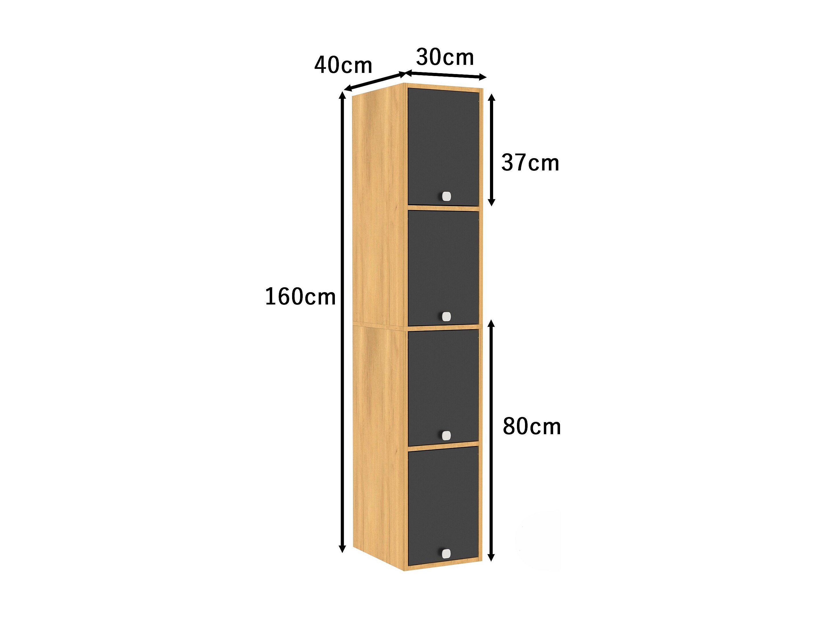 Colonne de Cuisine avec 4 Portes Abattantes, Poignée Bouton Argentée, Salle à Manger, 40 x 30 x 160cm, Naturel et Noir