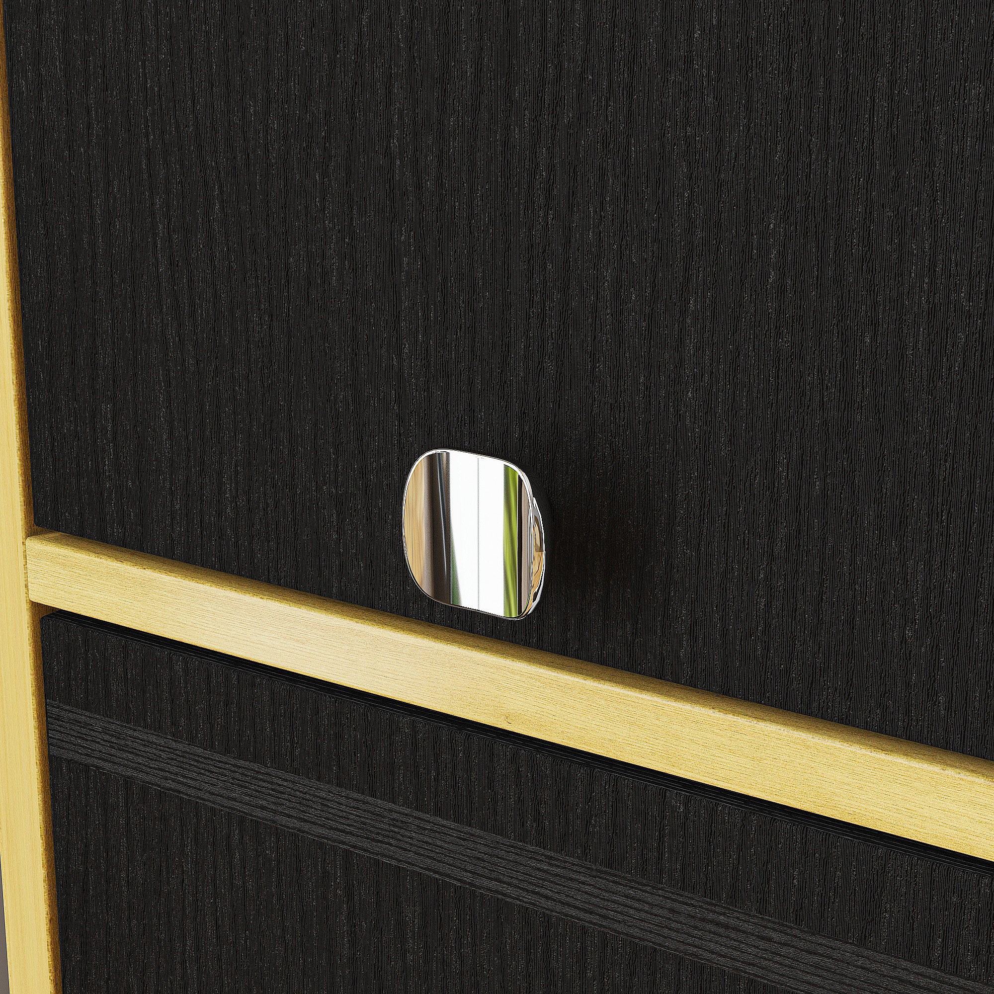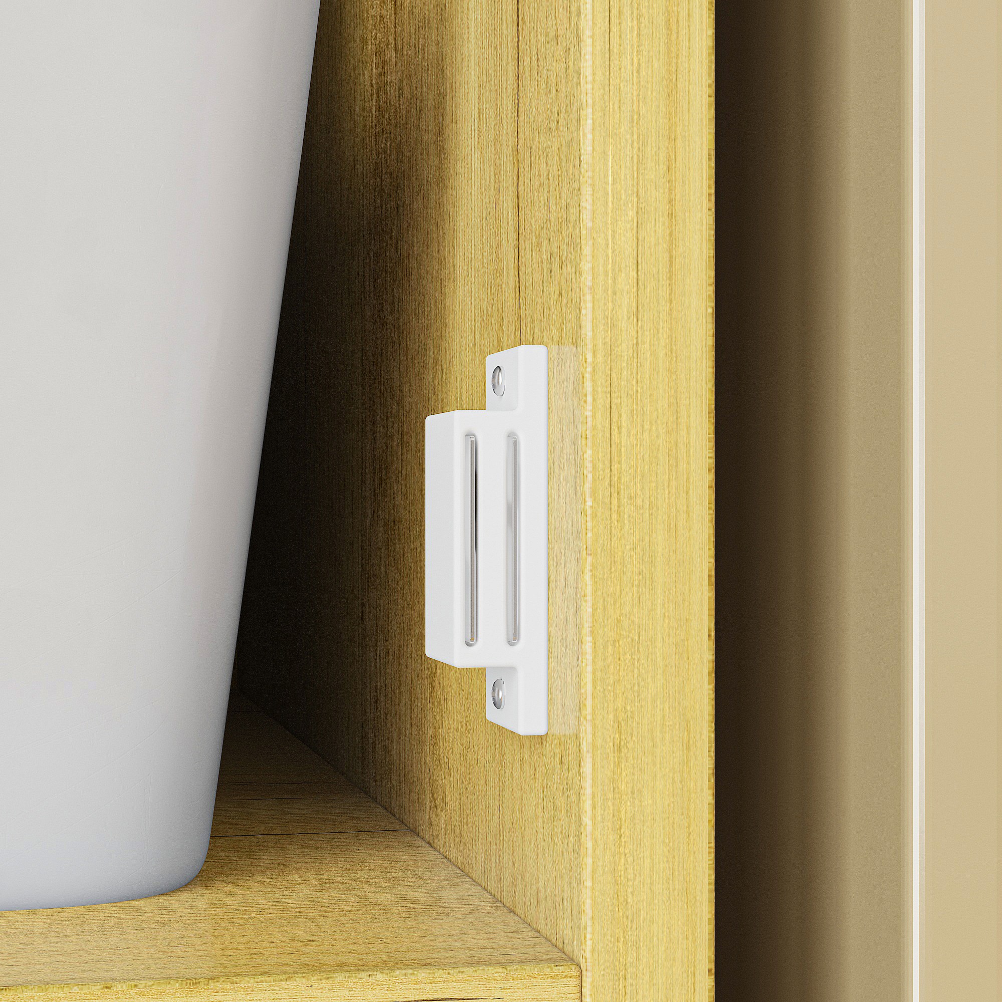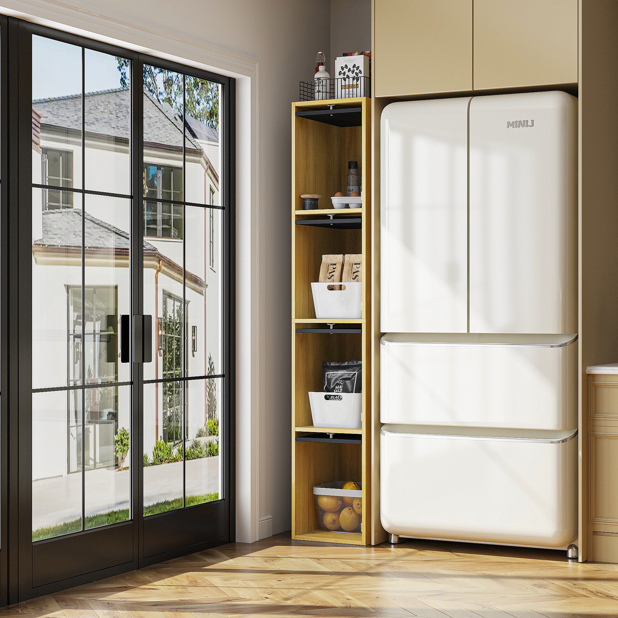 Colonne de Cuisine avec 4 Portes Abattantes, Poignée Bouton Argentée, Salle à Manger, 40 x 30 x 160cm, Naturel et Noir