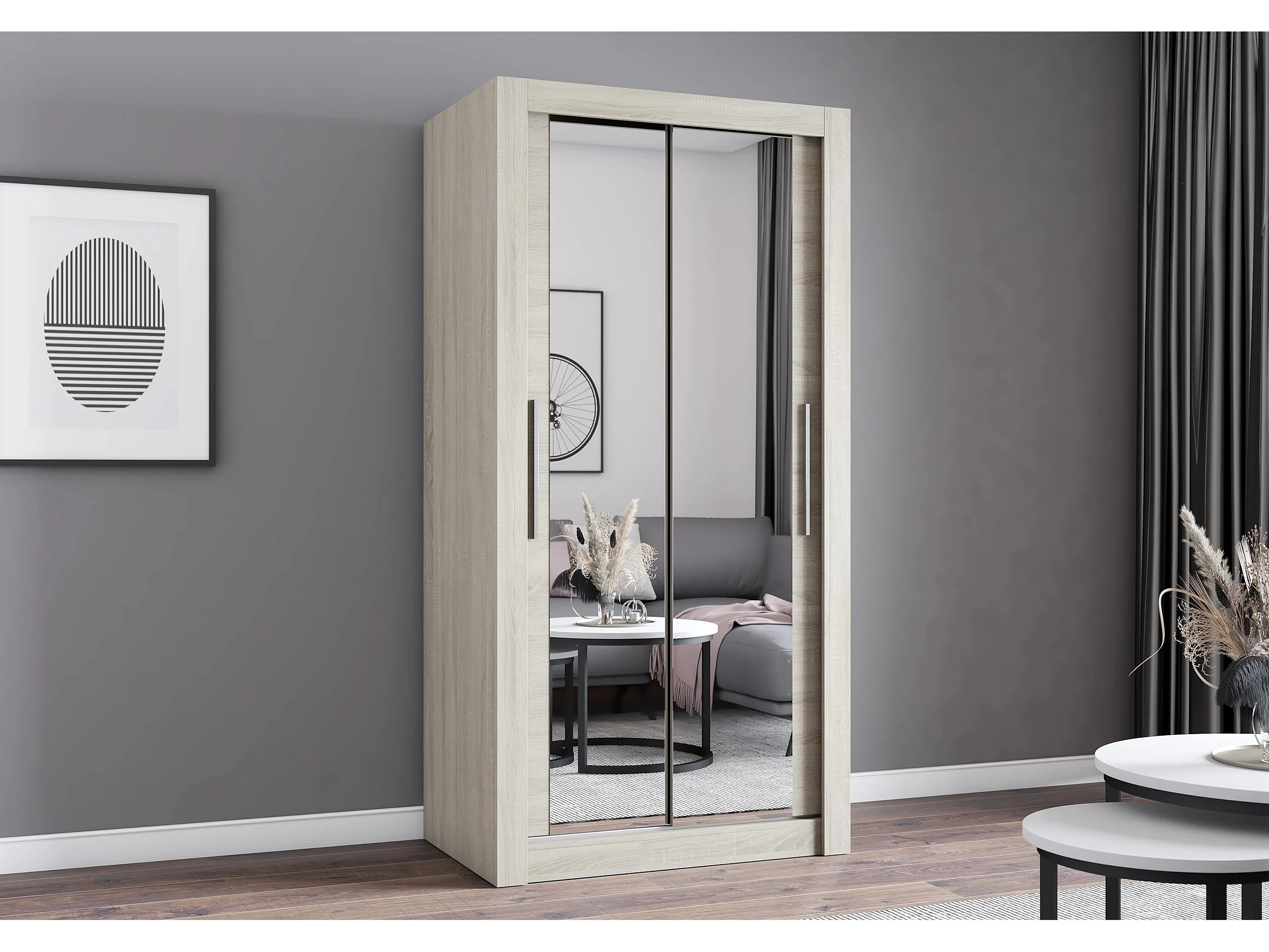 Armoire Moira 100 cm avec miroir - Chêne