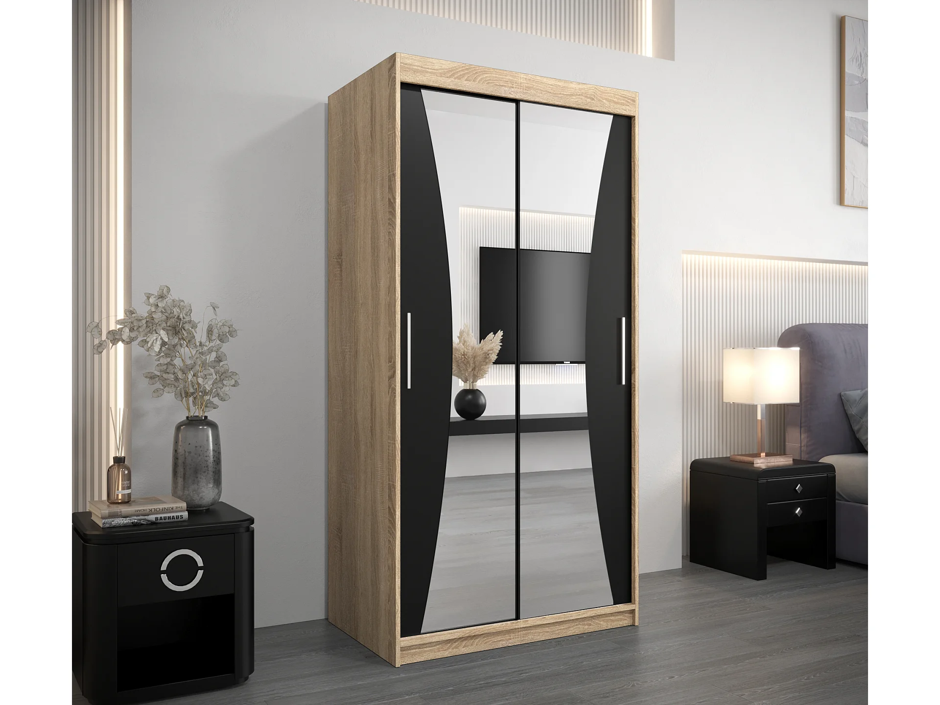 ARMOIRE MONACO À PORTES COULISSANTES 200/100/62 2 Portes (Sonoma/Noir)