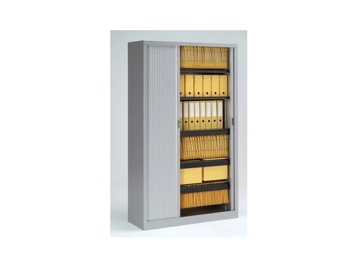 Armoire de bureau à rideaux gris 2 portes coulissantes Giao L90xH180xP43