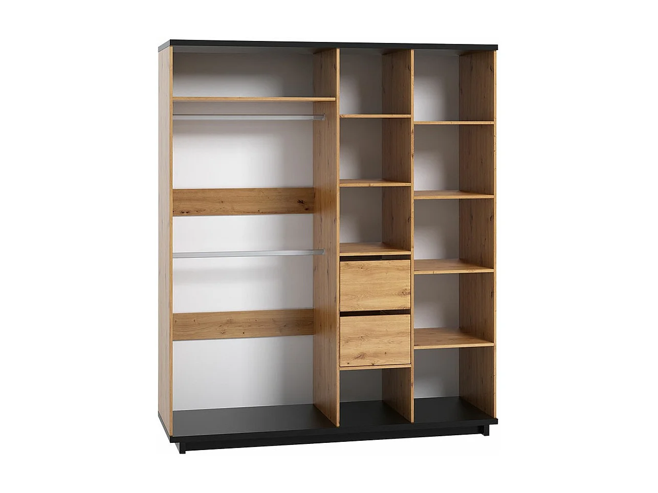 Armoire Morlira 108, Chêne Artisan|Noir mat, 215x180x60cm, Nombre d'étagères: 7