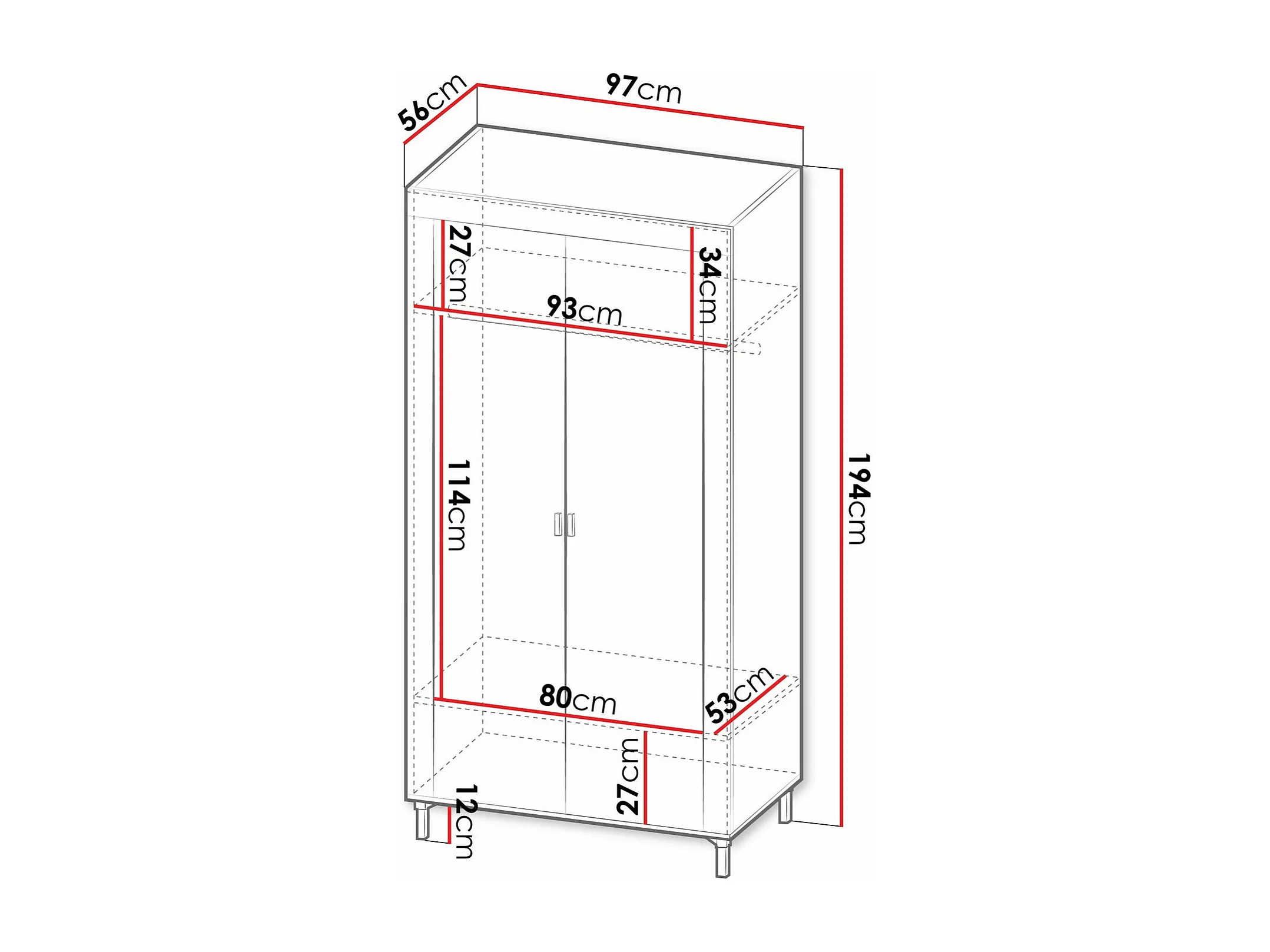 Armoire Mormavu 100, Noir mat|Chêne, 194x97x56cm, Portes d'armoire: Avec des charnières