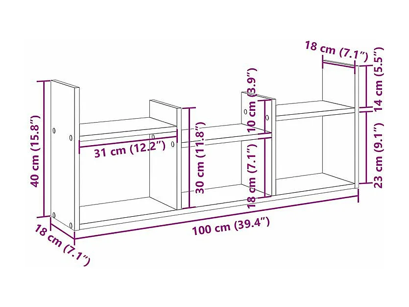 Étagère cube murale 7 compartiments noir bois d'ingénierie