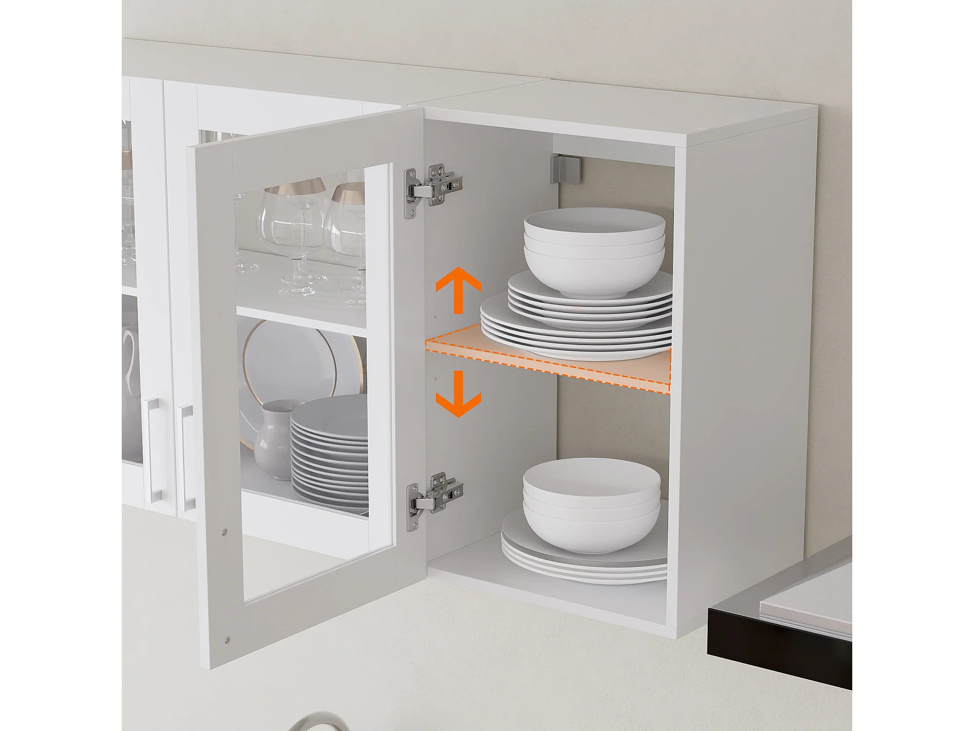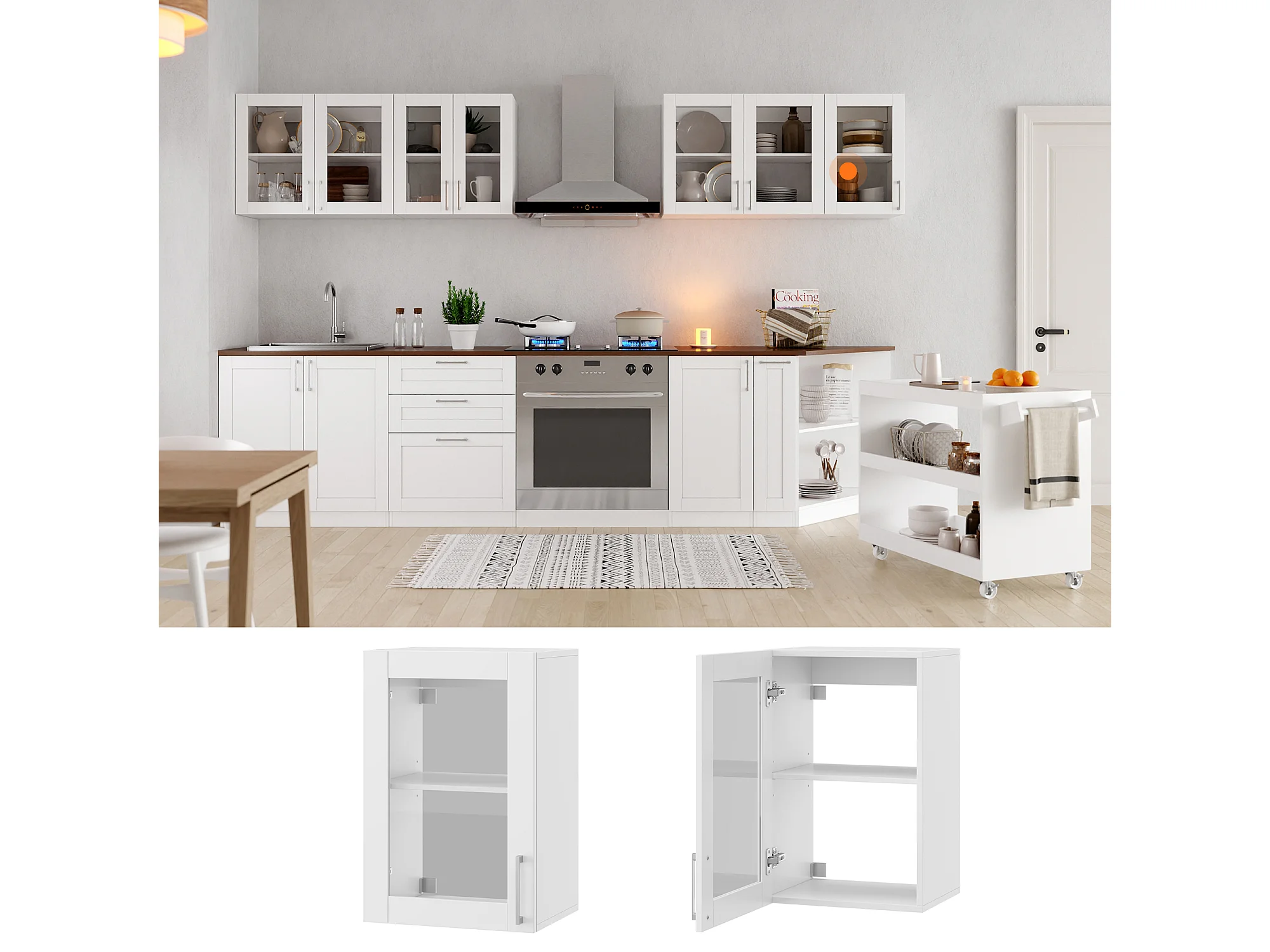 Armoire Murale de Cuisine avec 2 Portes en Verre, Élément haut de cuisine avec Étagère réglable, 80 x 31.5 x 60cm, Blanc