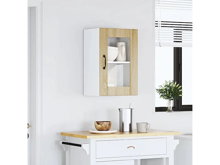 Armoire murale de cuisine et porte en verre Lucca chêne sonoma