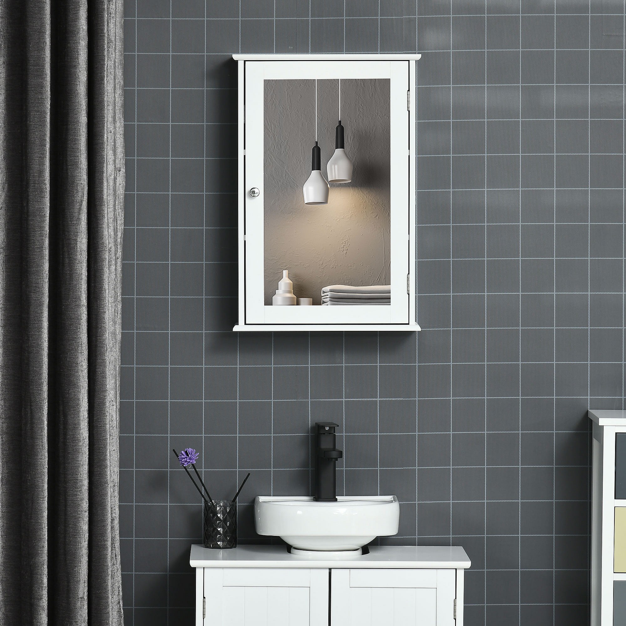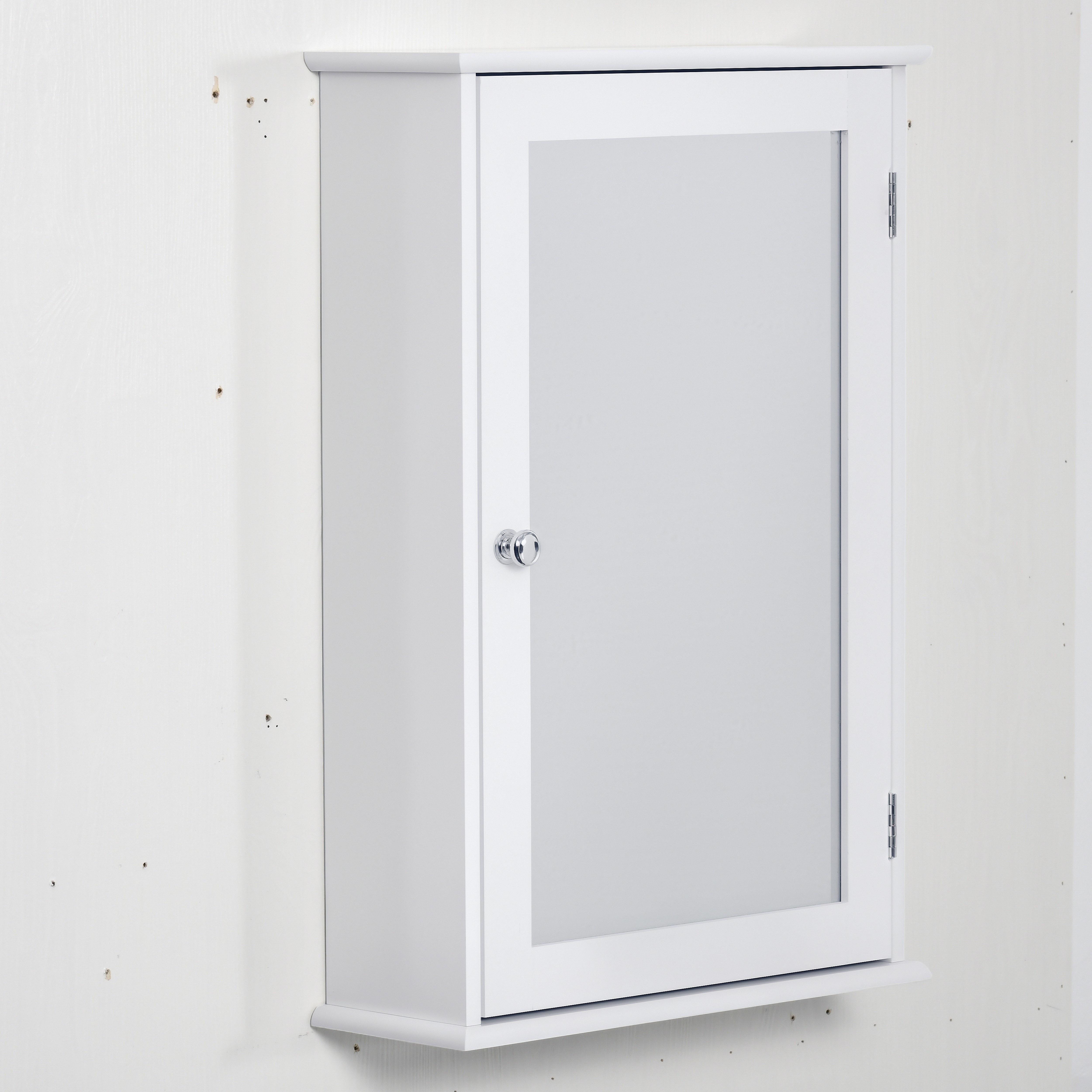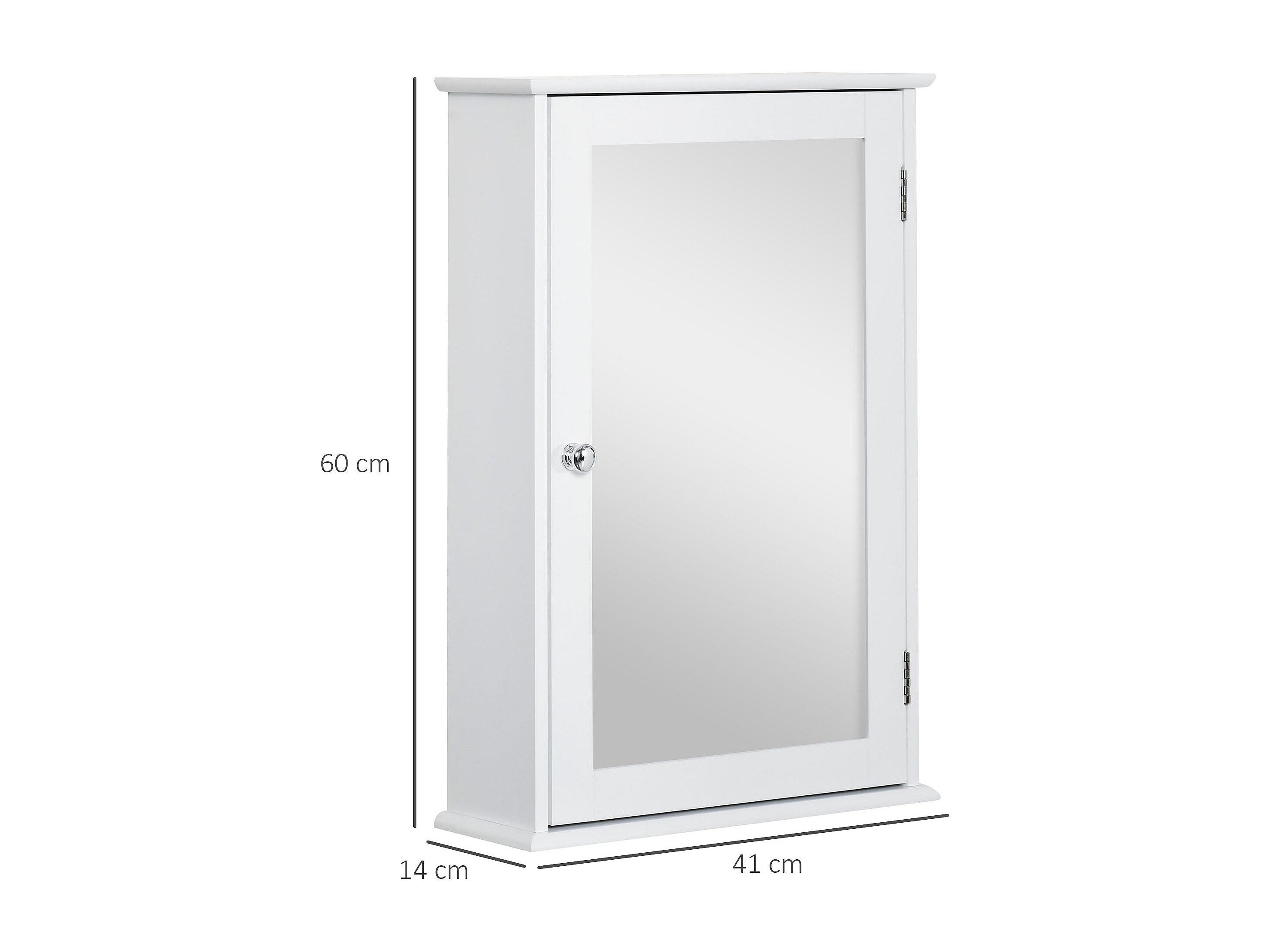 Armoire murale de salle de bain avec miroir - armoire à glace - placard de rangement toilettes - 1 porte, 2 étagères - verre MDF blanc