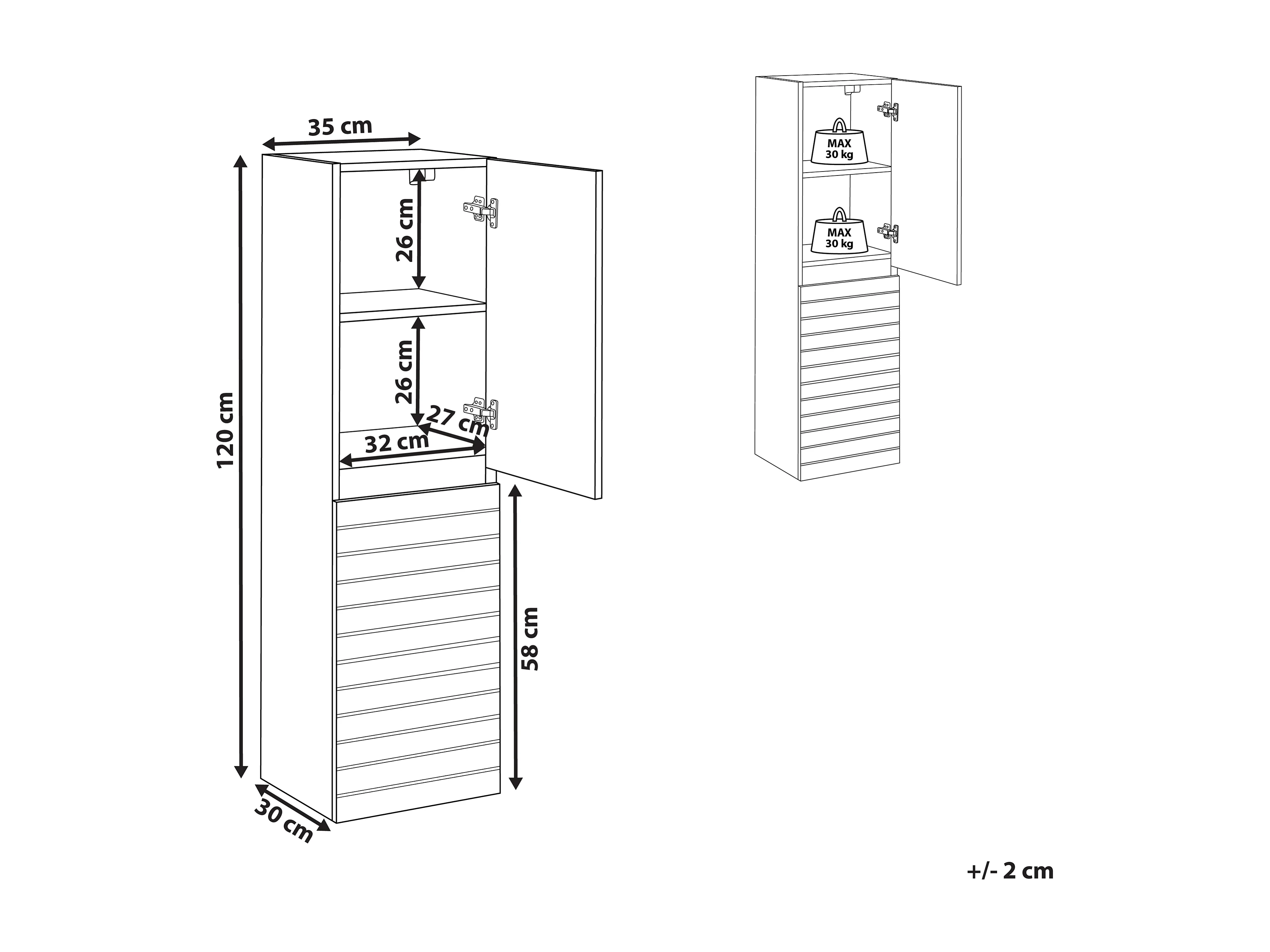 Armoire murale de salle de bains URUCU 35 cm Marron clair
