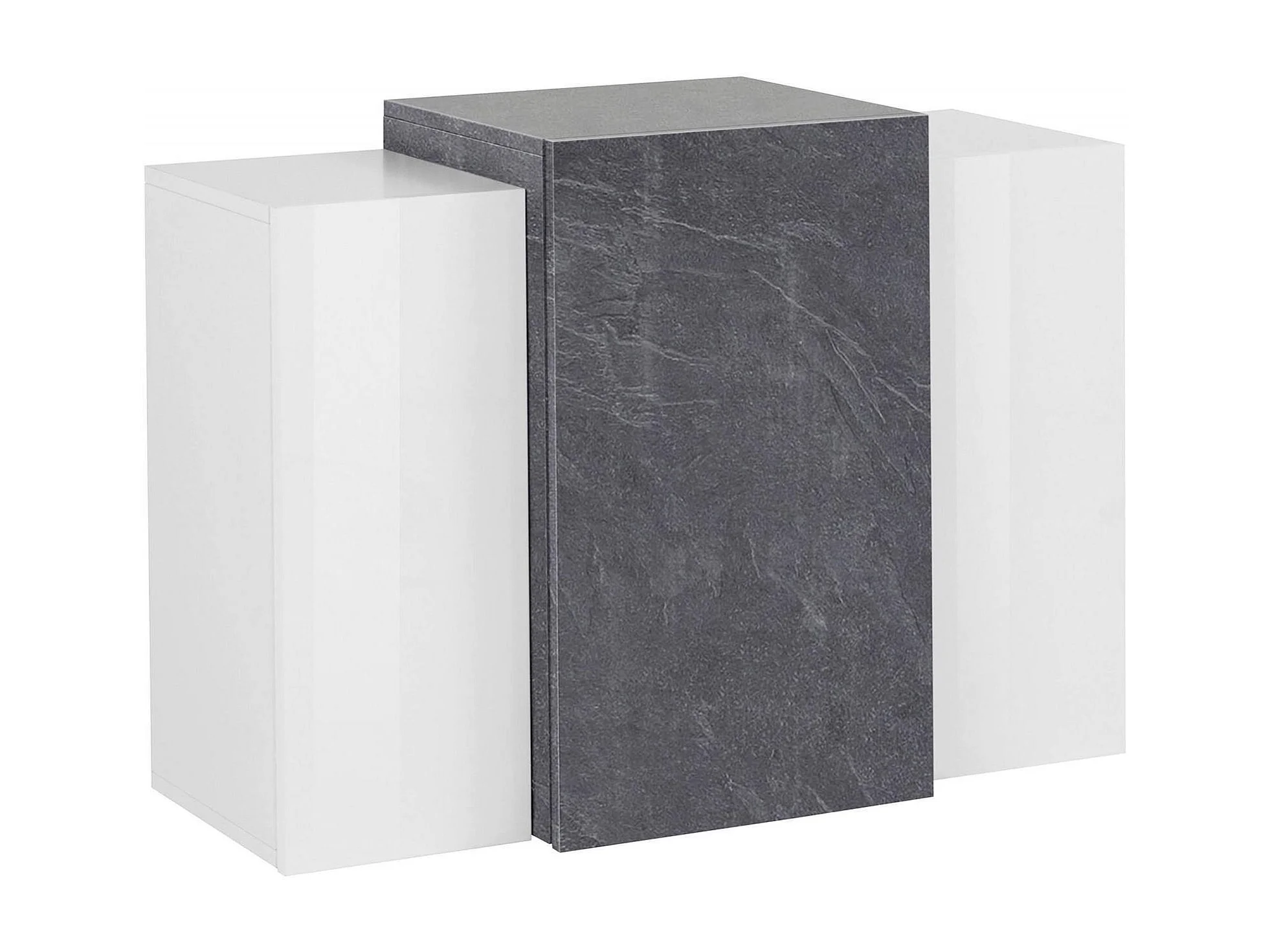 Armoire suspendue Didze, Armoire polyvalente, Armoire murale, 100% Made in Italy, 90x38h66 cm, Blanc brillant et ardoise