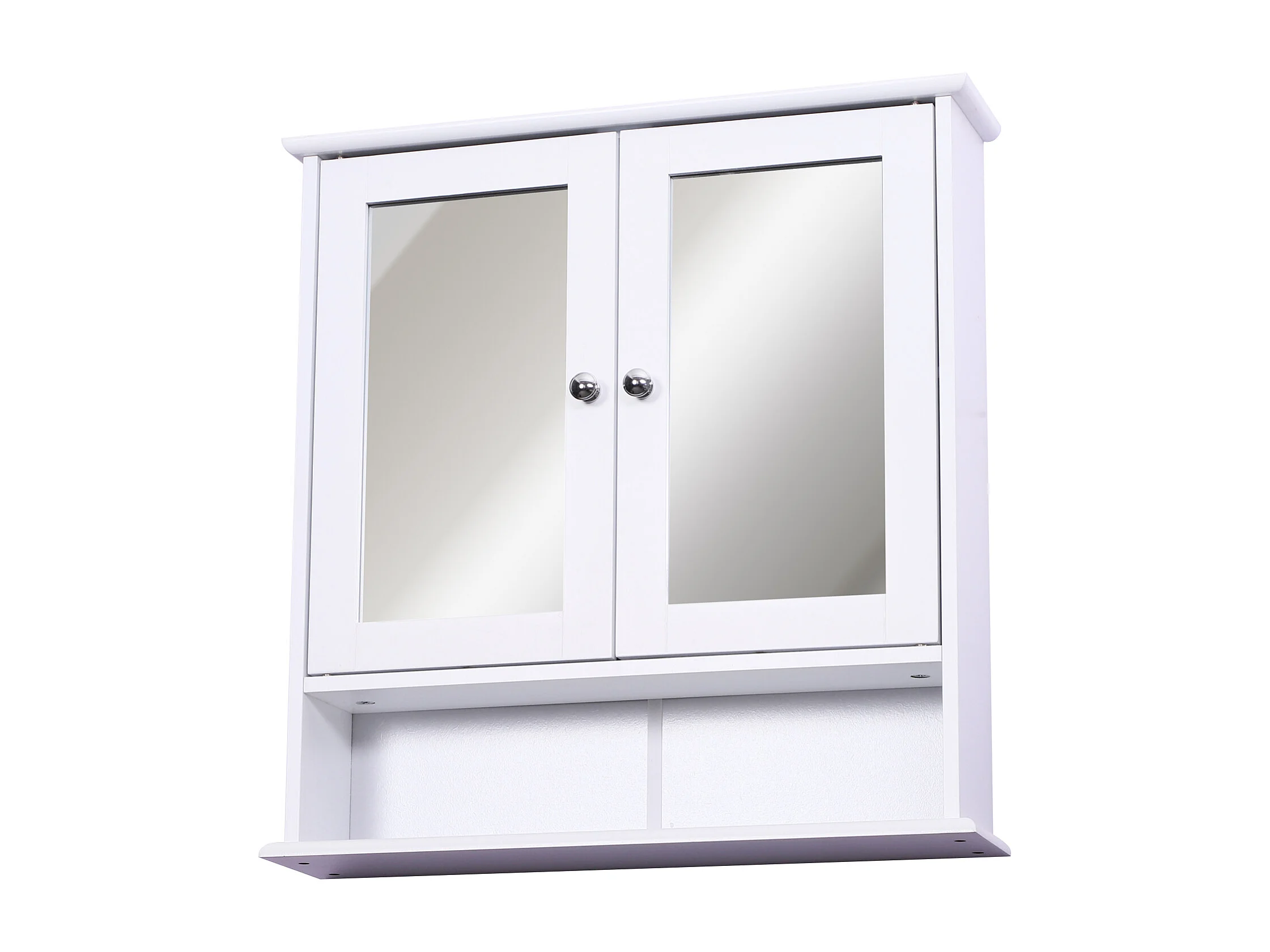 Armoire murale de salle de bain avec étagère réglable et 2 portes avec miroir en MDF - dim. 56I x 14P x 46H cm