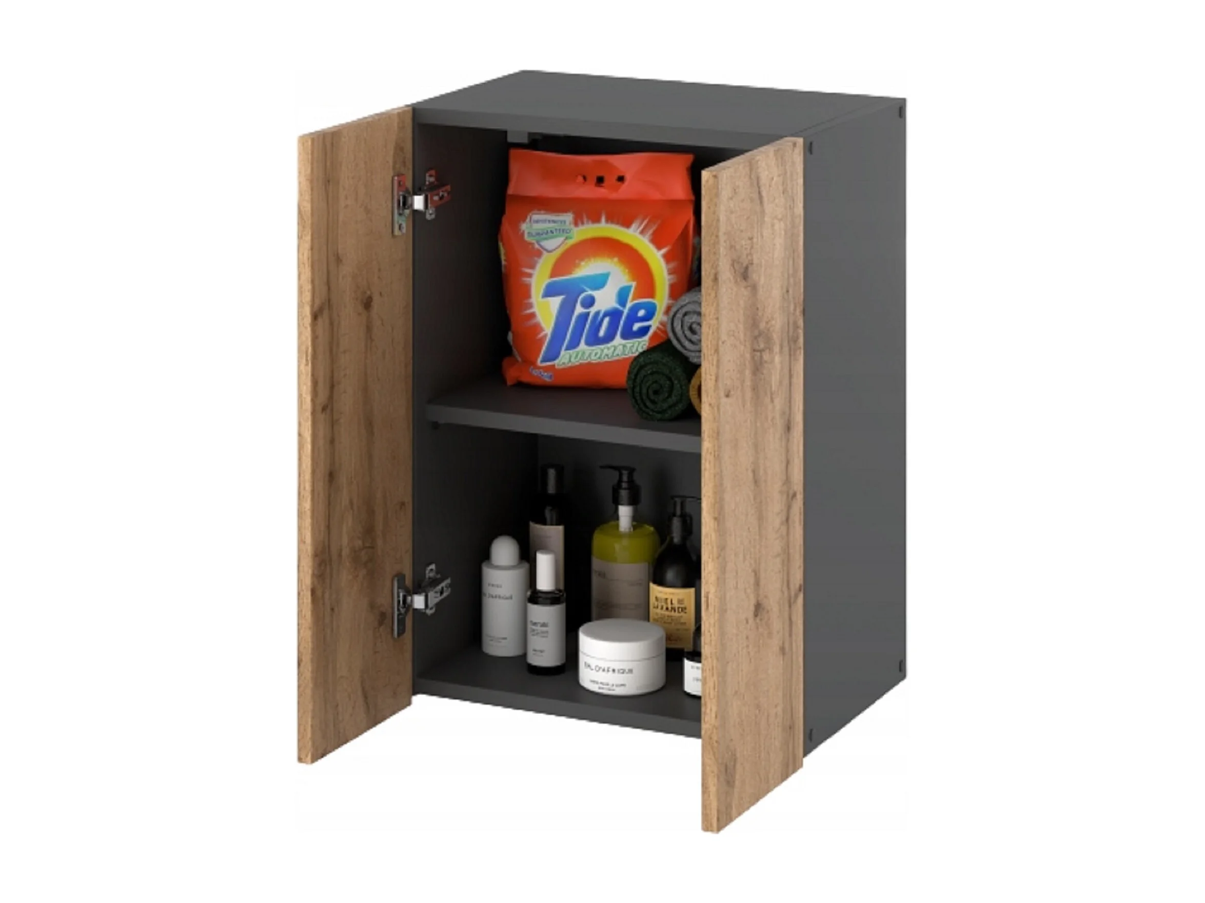 Armoire salle de bains AKORD FIN accr. au mur Blanche 60 cm 2 portes façade Gris Graphite 2 étagères 60x22,5x60 cm