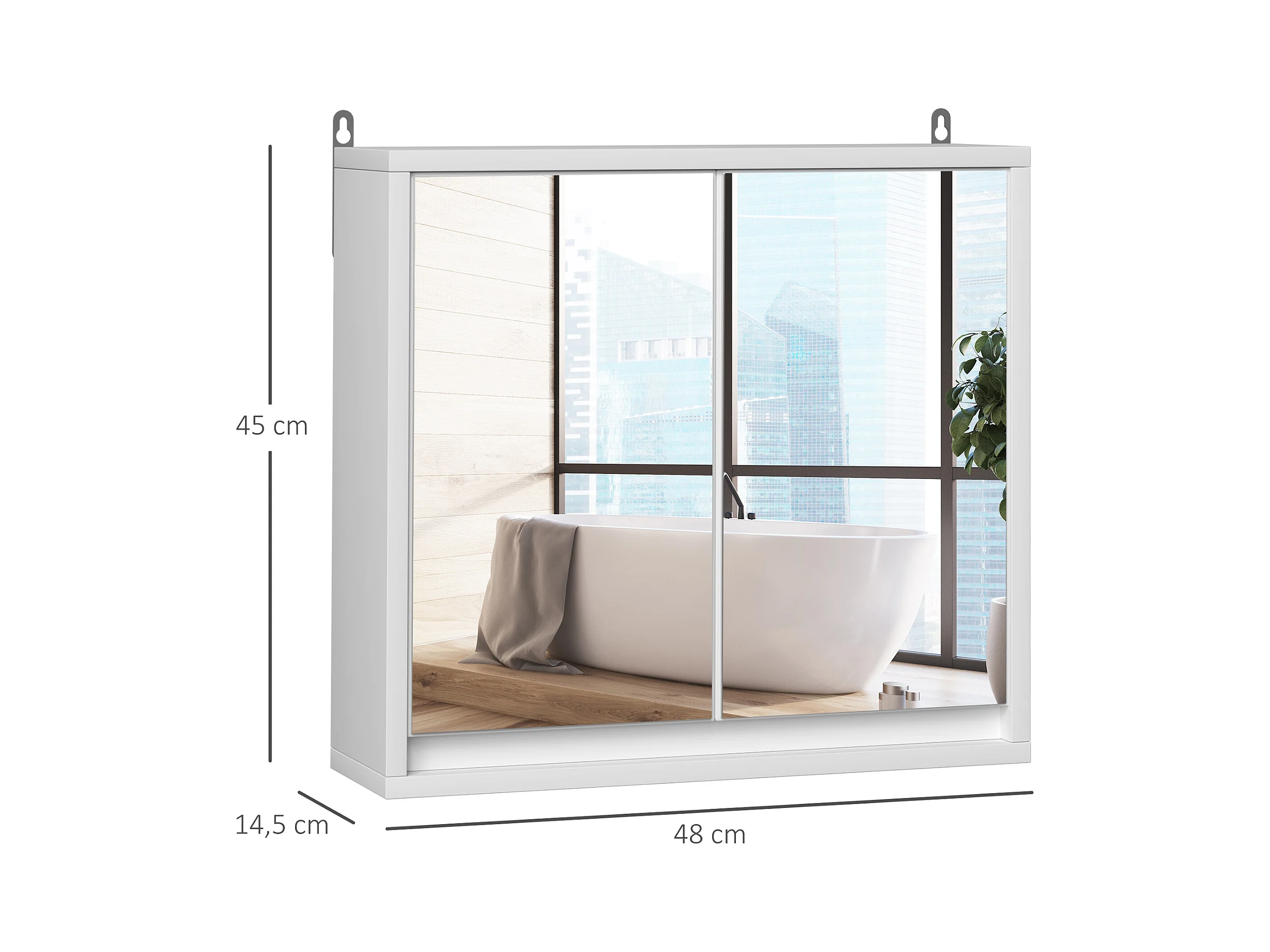 Armoire murale miroir salle de bain 2 étagères dim. 48L x 14l x 45H cm panneaux particules MDF blanc