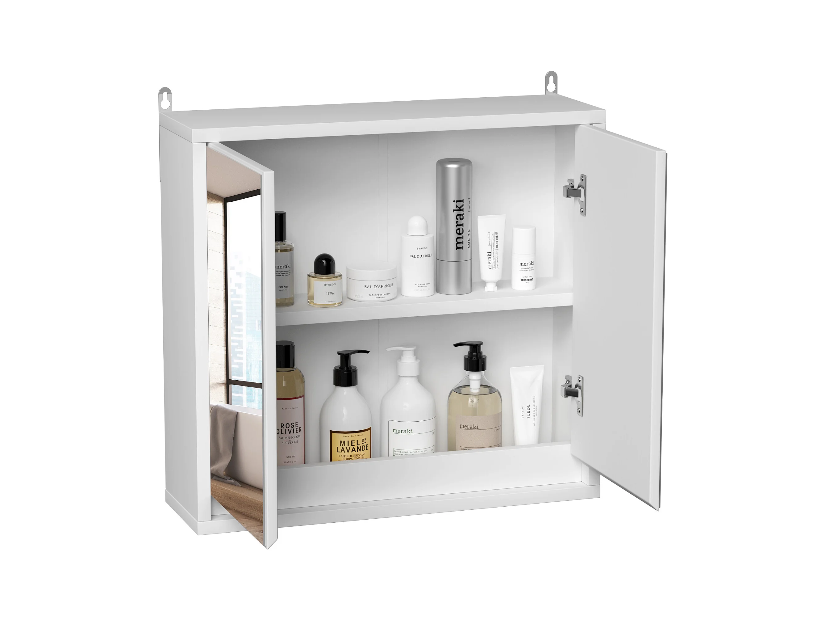 Armoire murale de salle de bain avec étagère réglable et 2 portes avec miroir en MDF - dim. 56I x 14P x 46H cm