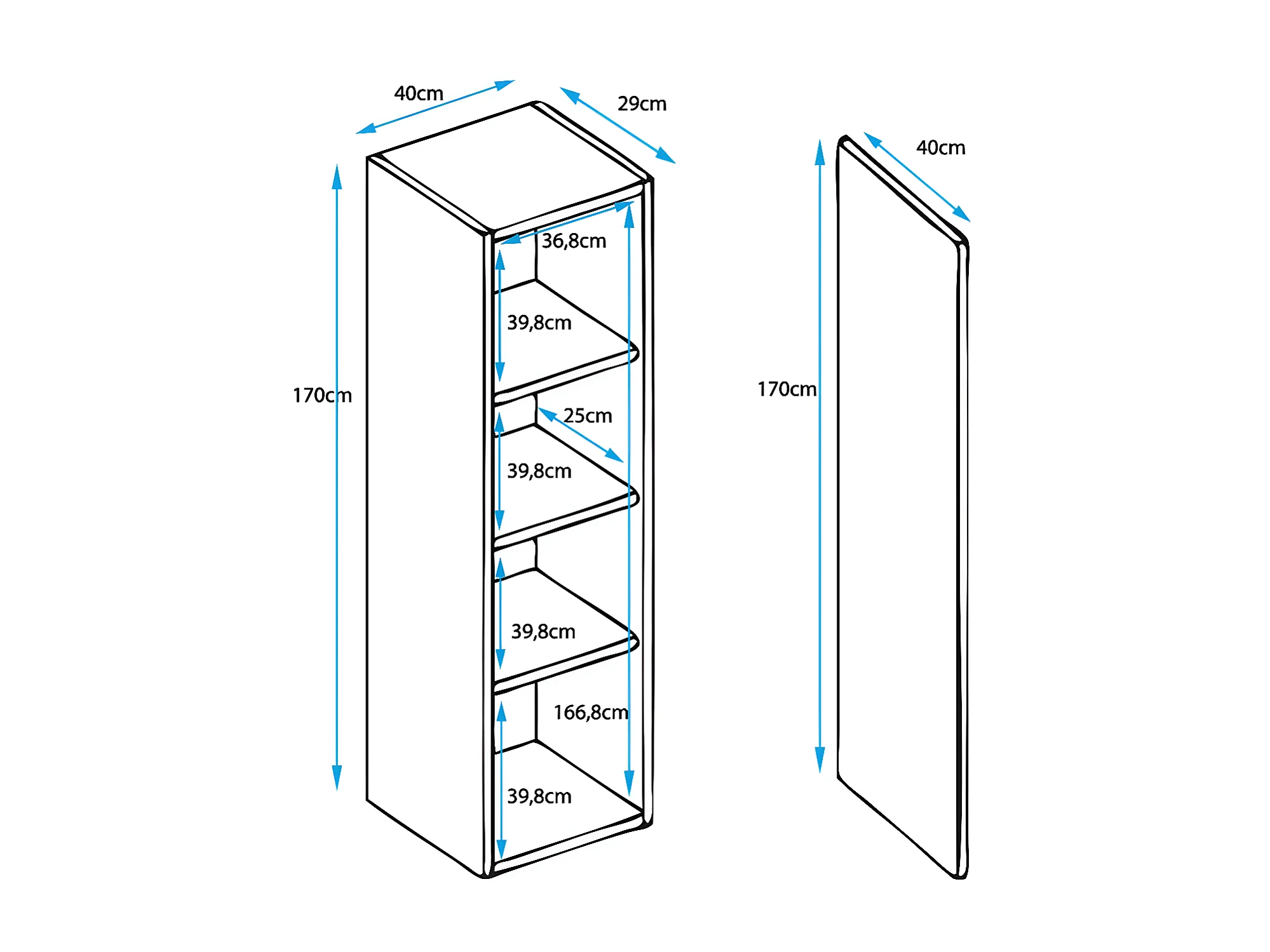 Armoire murale pour Salon Salle à manger en Blanc et Noir 40x29x170cm Nora V4