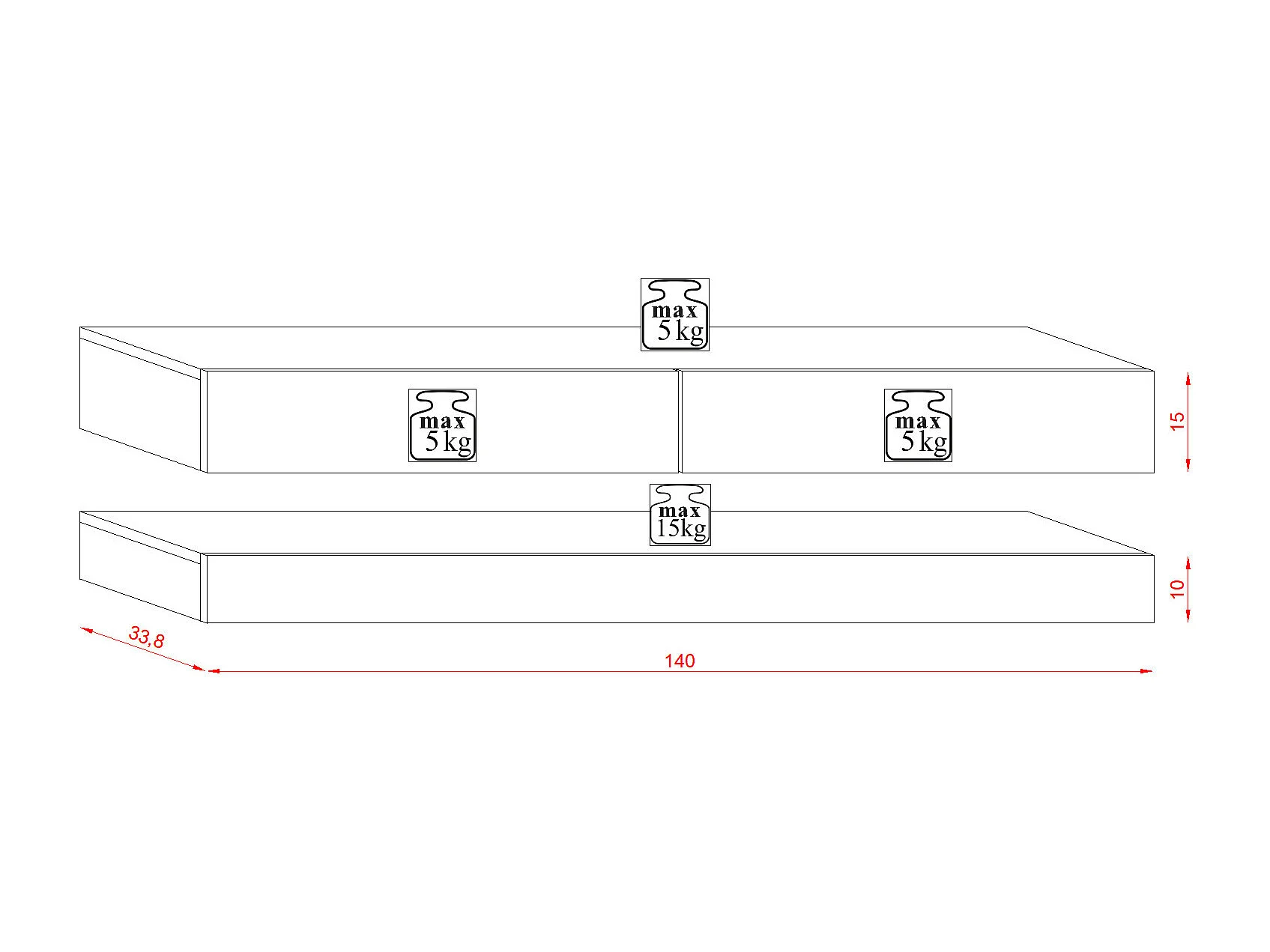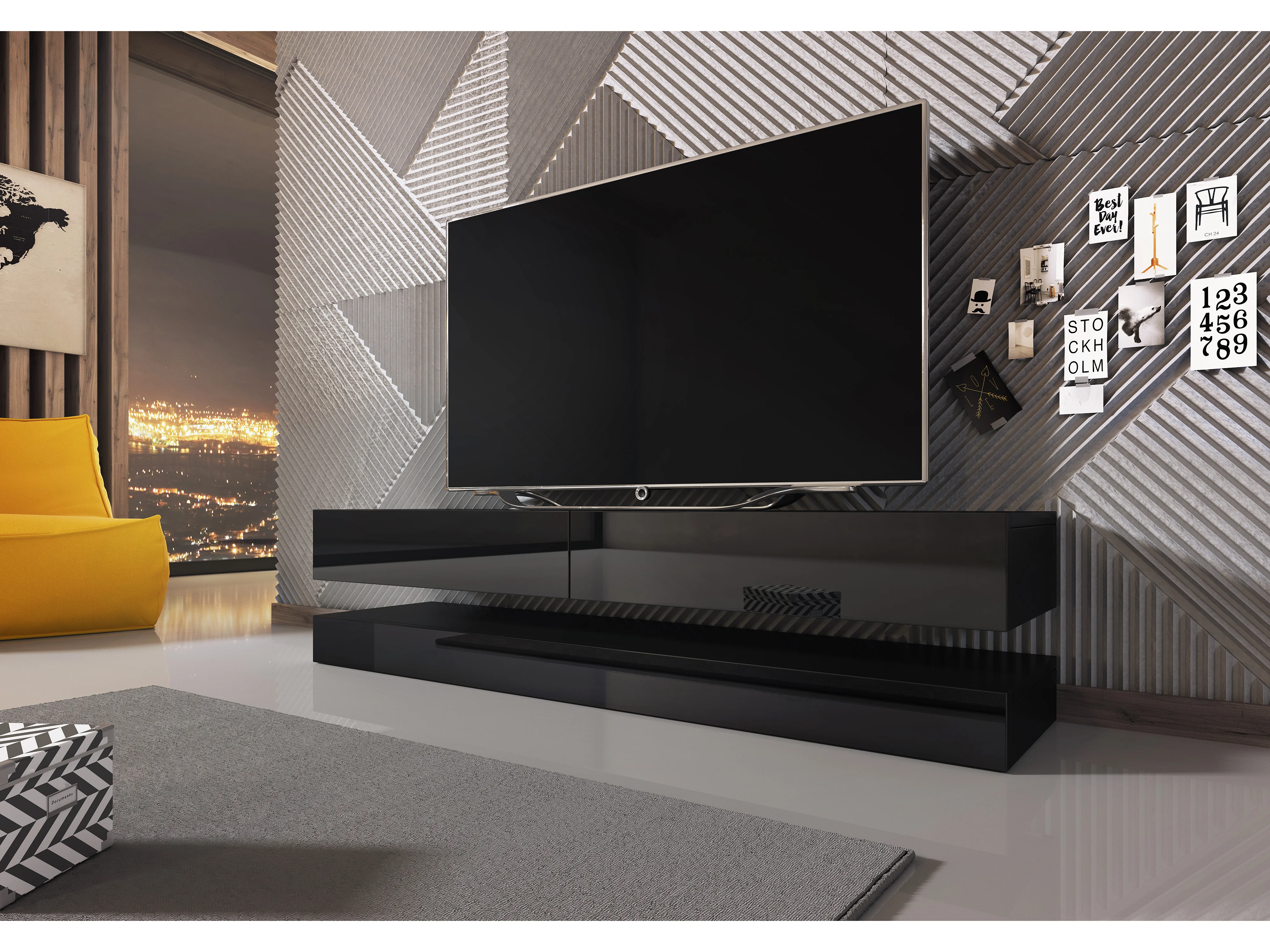 Armoire murale pour téléviseur suspendue Derby 140 noir / noir brillant