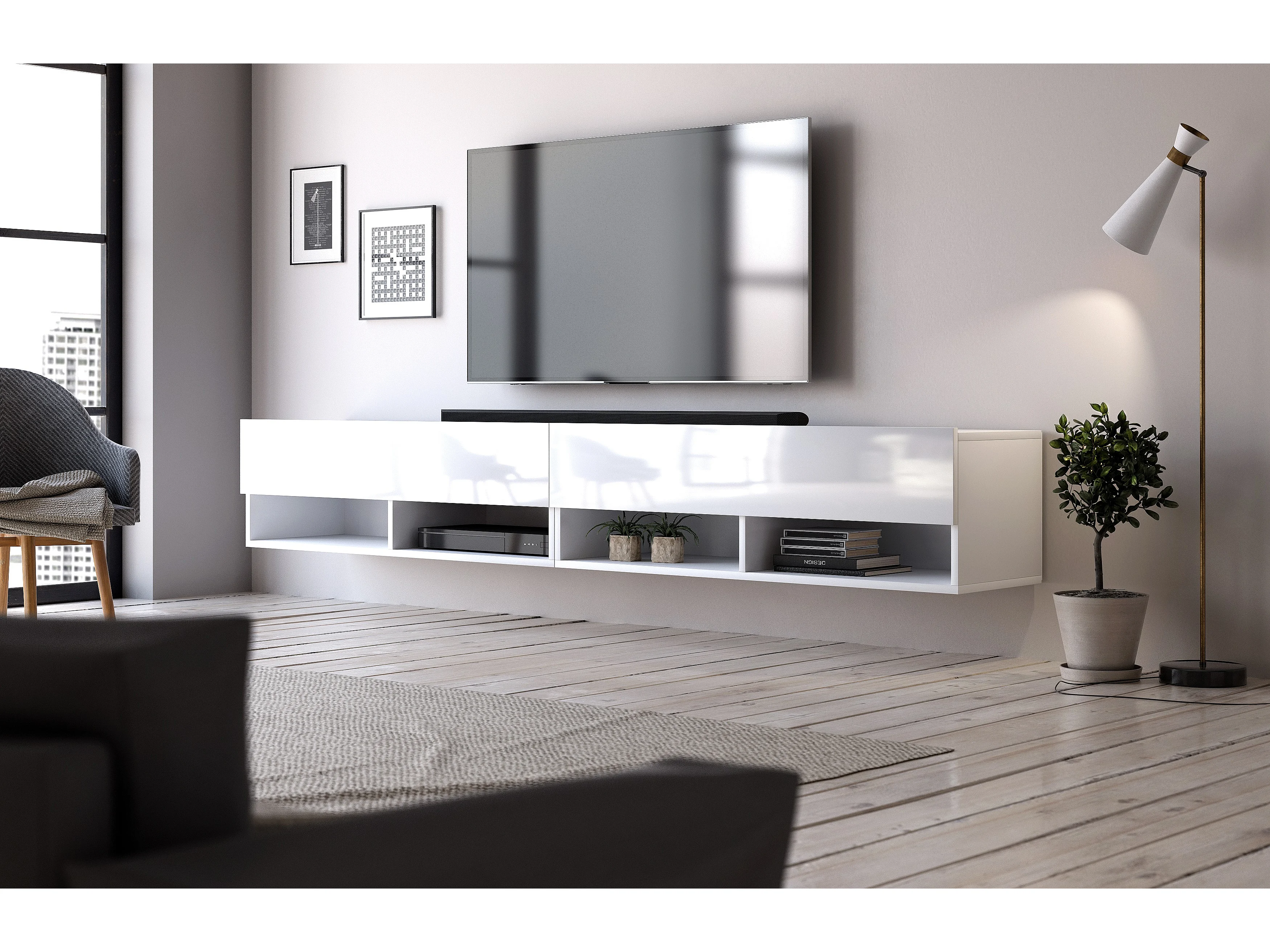Armoire murale pour téléviseur suspendu Fly 140 blanc / blanc brillant