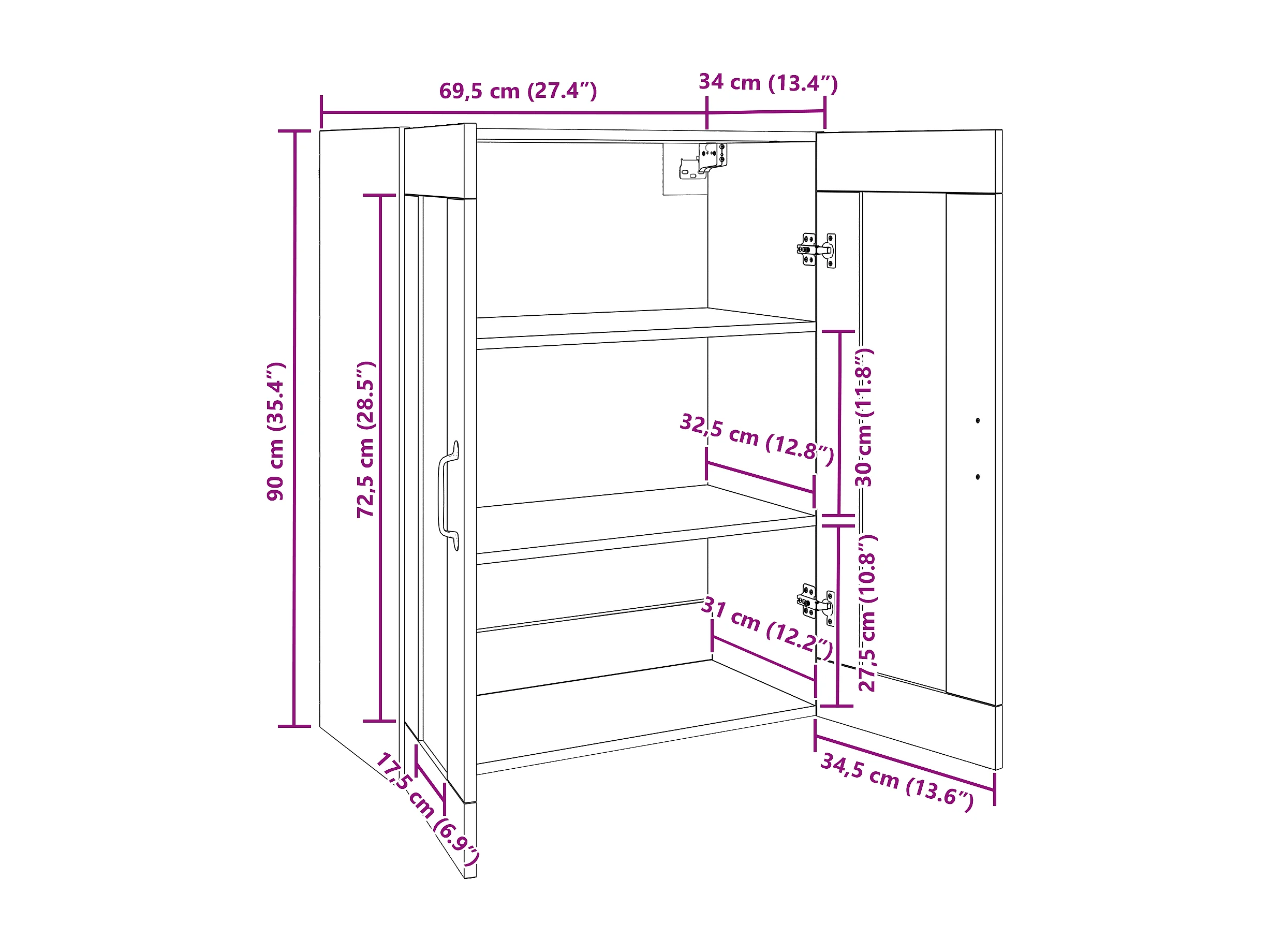 Armoire murale suspendue avec étagère Montage mural avec stockage avec porte Marron 69,5 x 34 x 90 cm