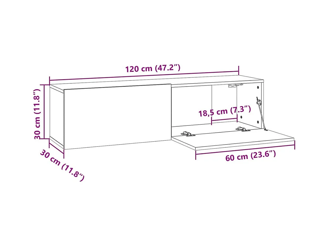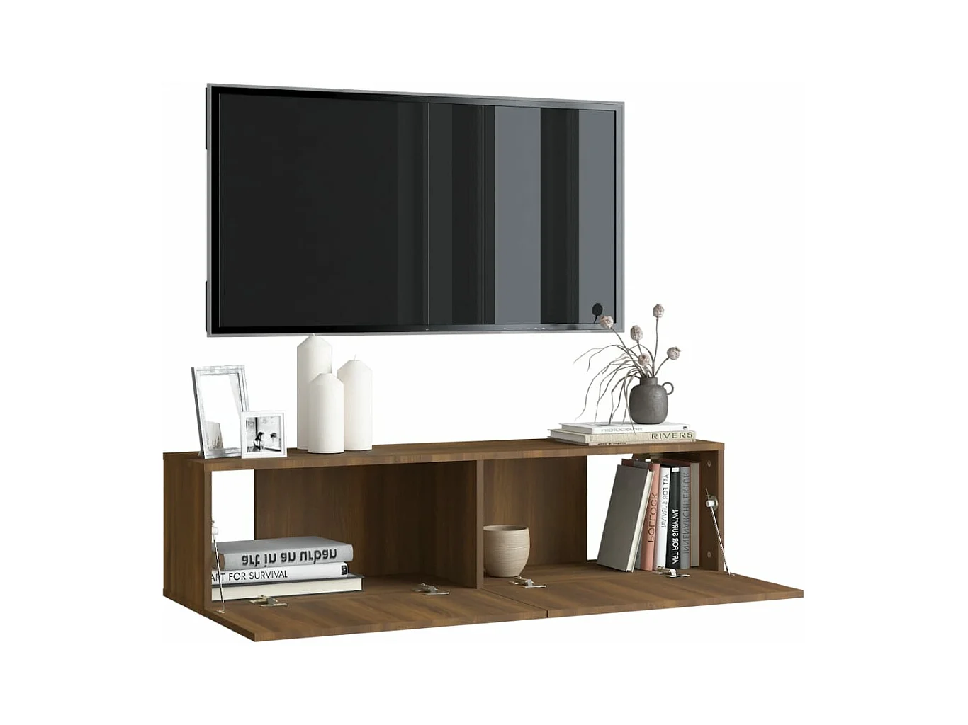 Meuble TV mural chêne artisanal 100x30x30 cm bois d'ingénierie