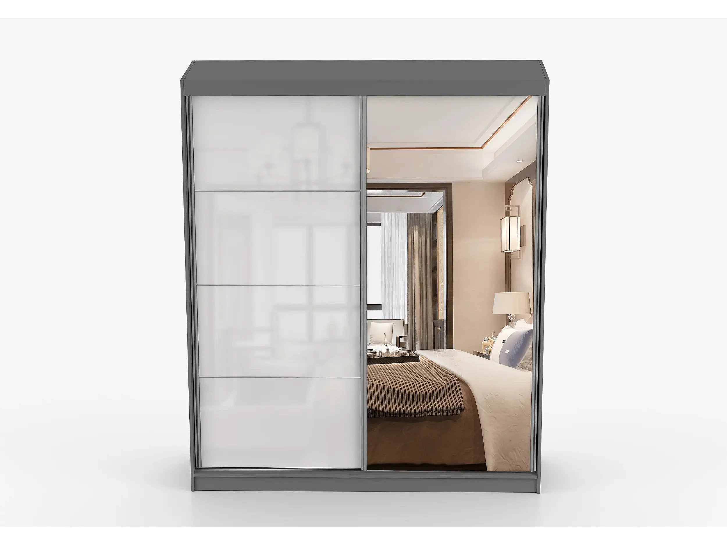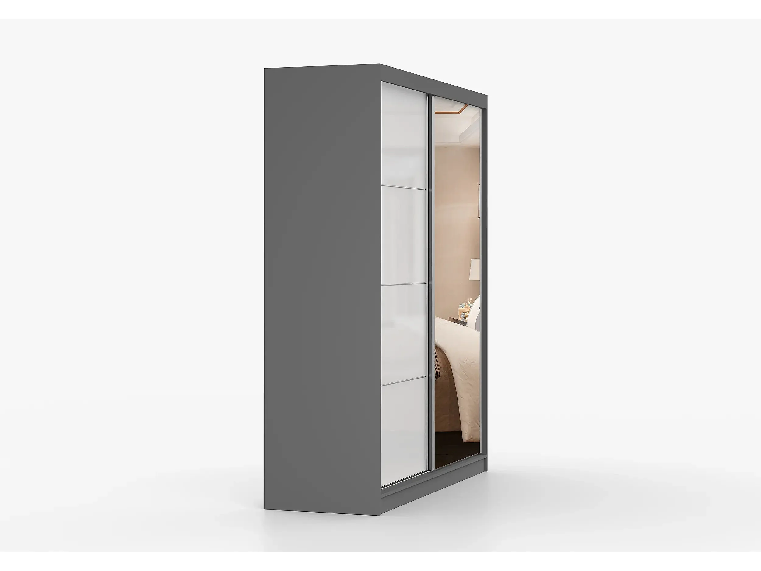 Armoire Naélie 183 cm avec miroir - Gris - Blanc