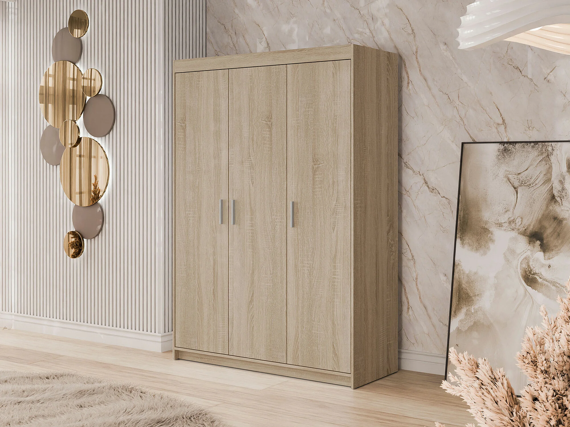 Armoire Novduni 101, Sonoma chêne, 191x133x53cm, Portes d'armoire: Avec des charnières