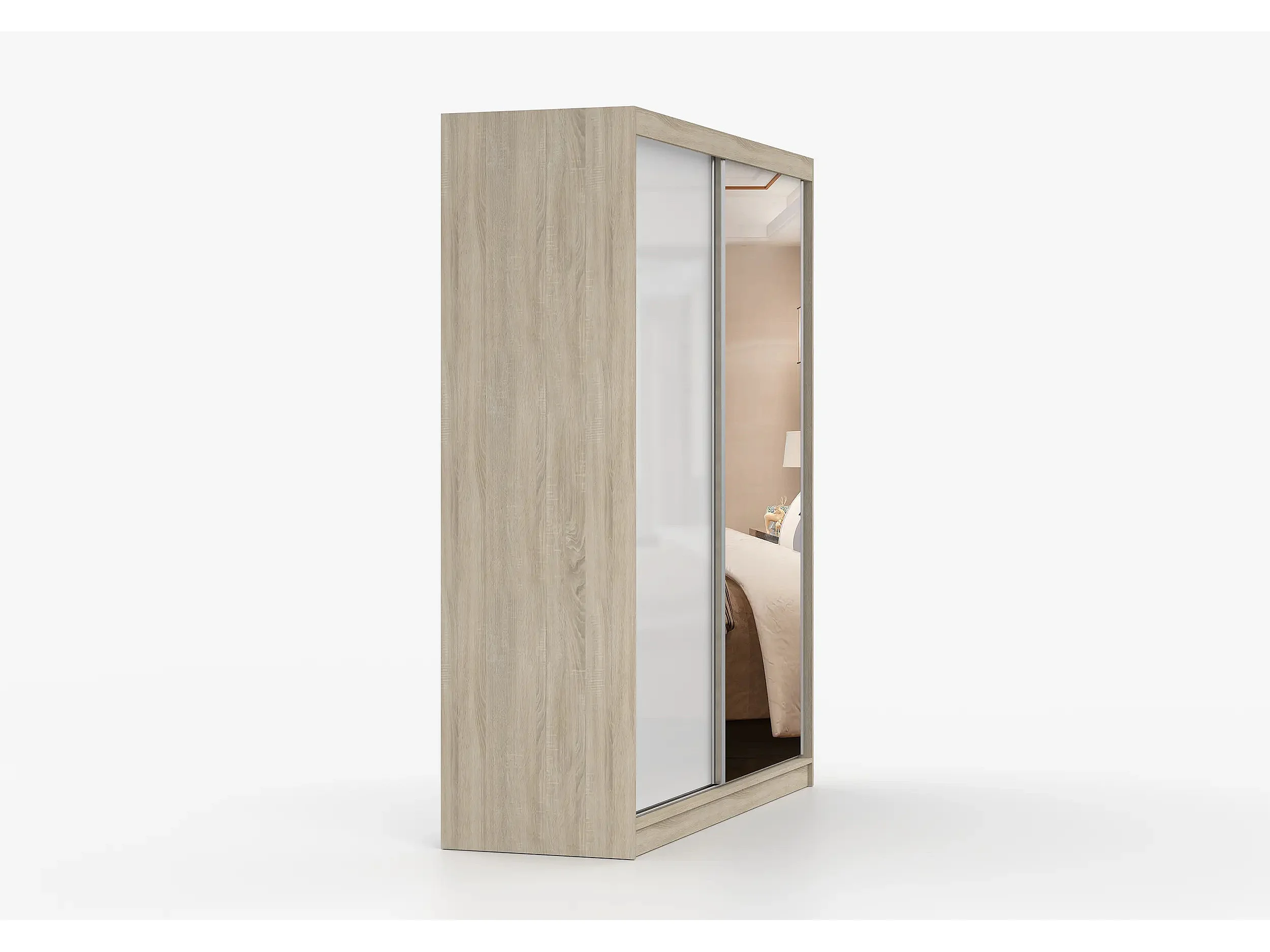 Armoire Nyméria 183 cm avec miroir - Chêne - Blanc