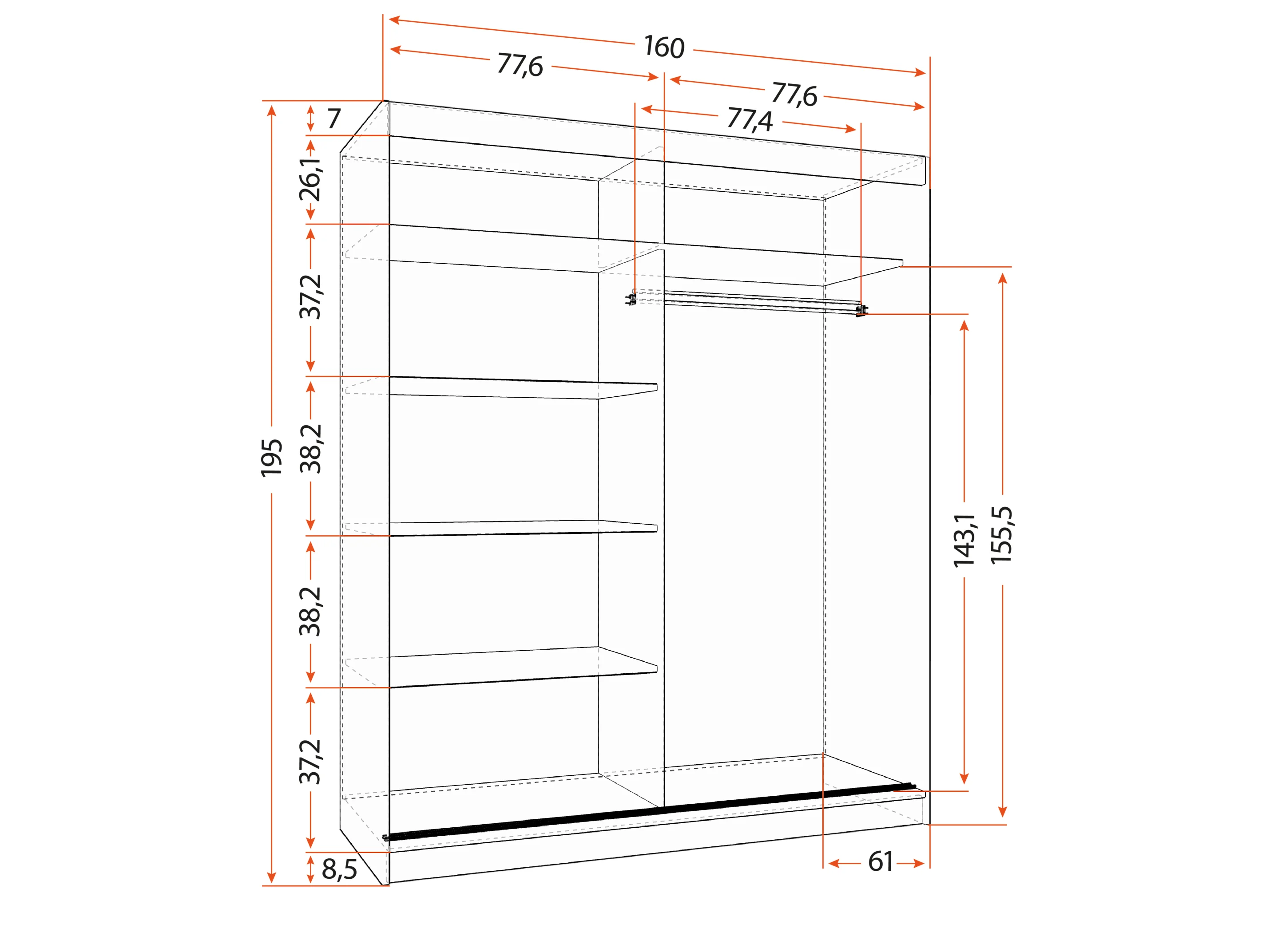 Armoire Ondine 160 cm avec miroir - Blanc - Artisan