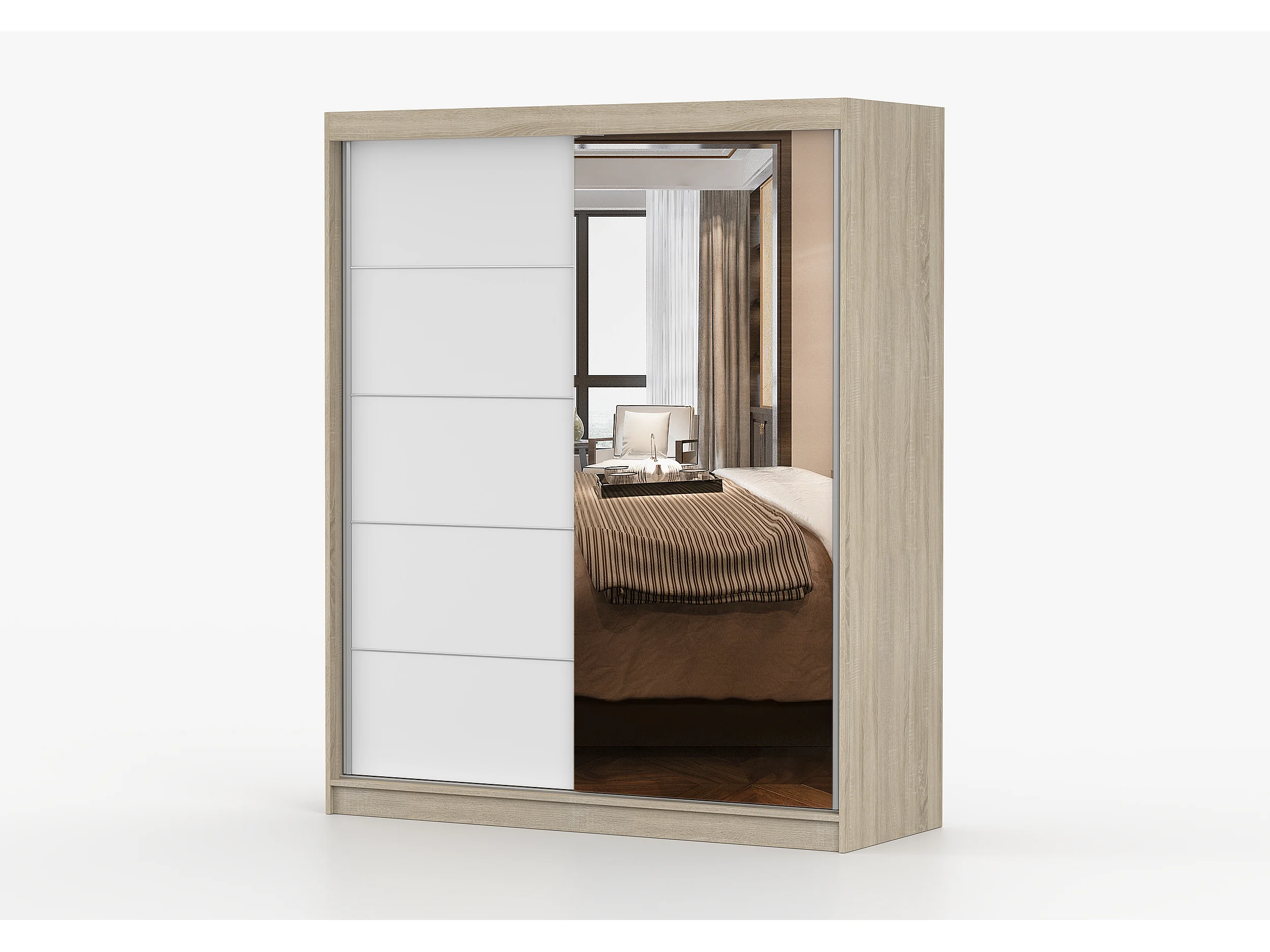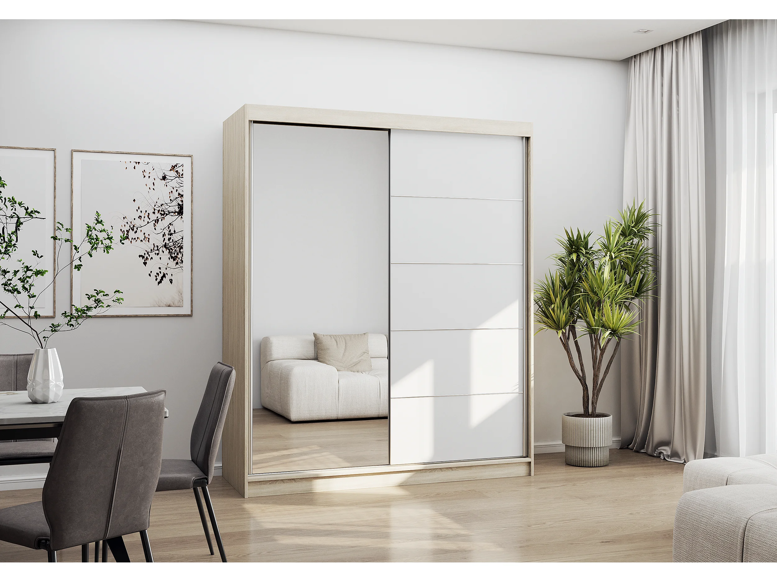 Armoire Ondine 160 cm avec miroir - Chêne - Blanc