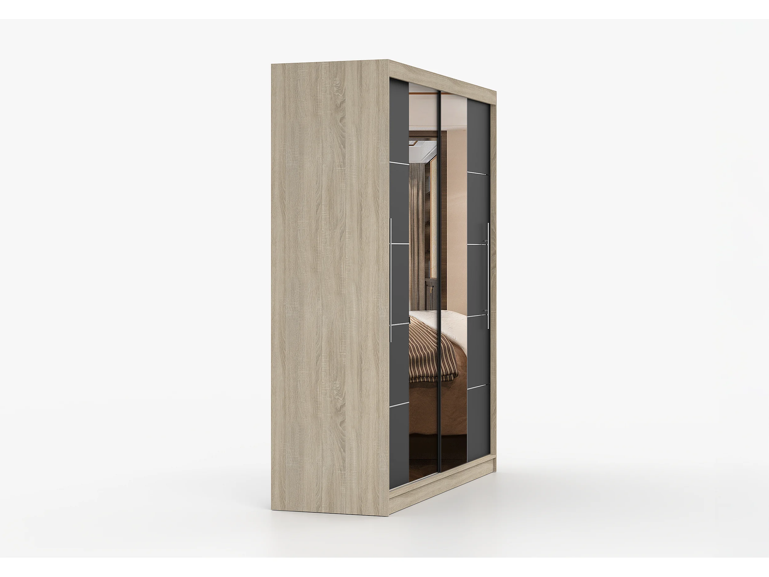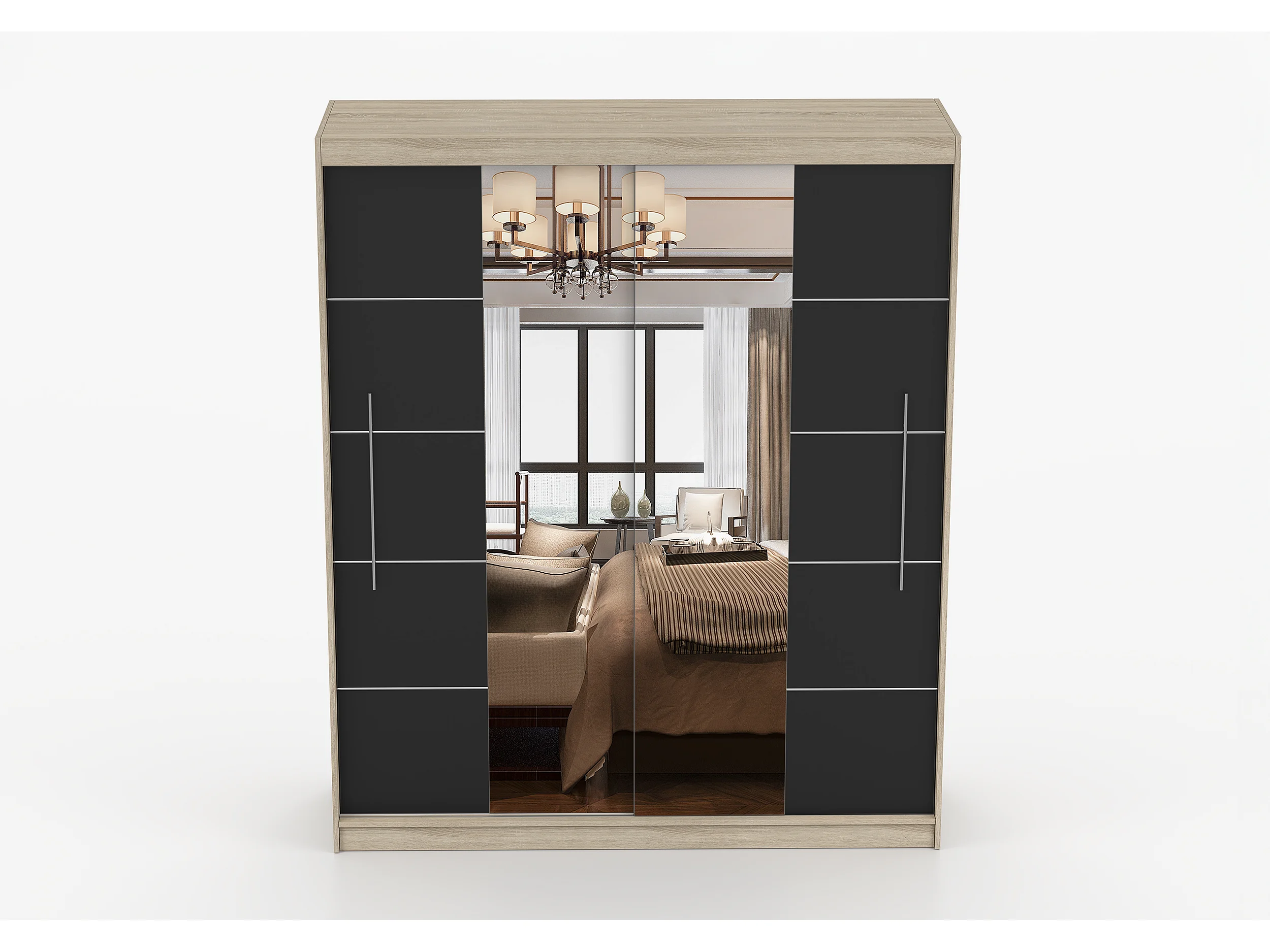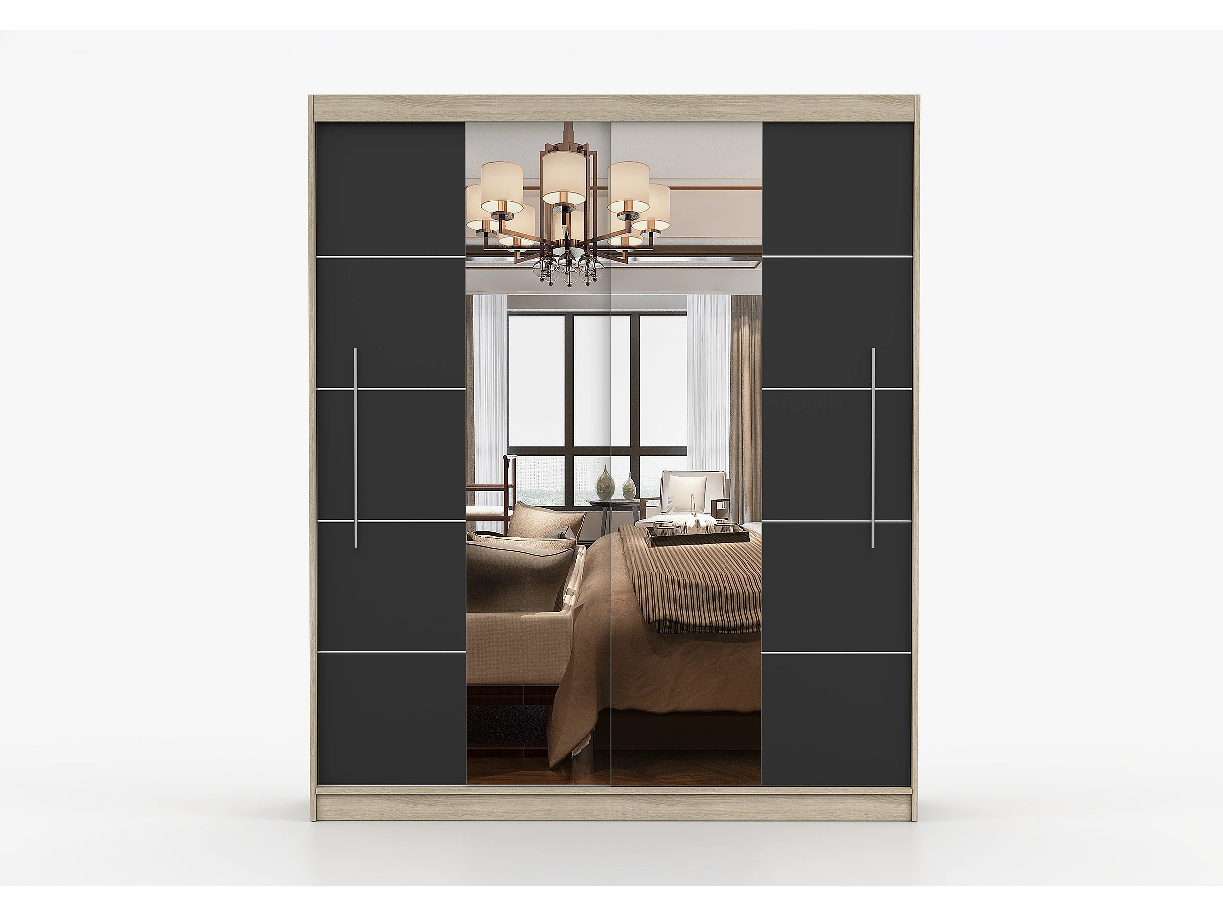 Armoire Orelia 203 cm avec miroir - Chêne - Noir