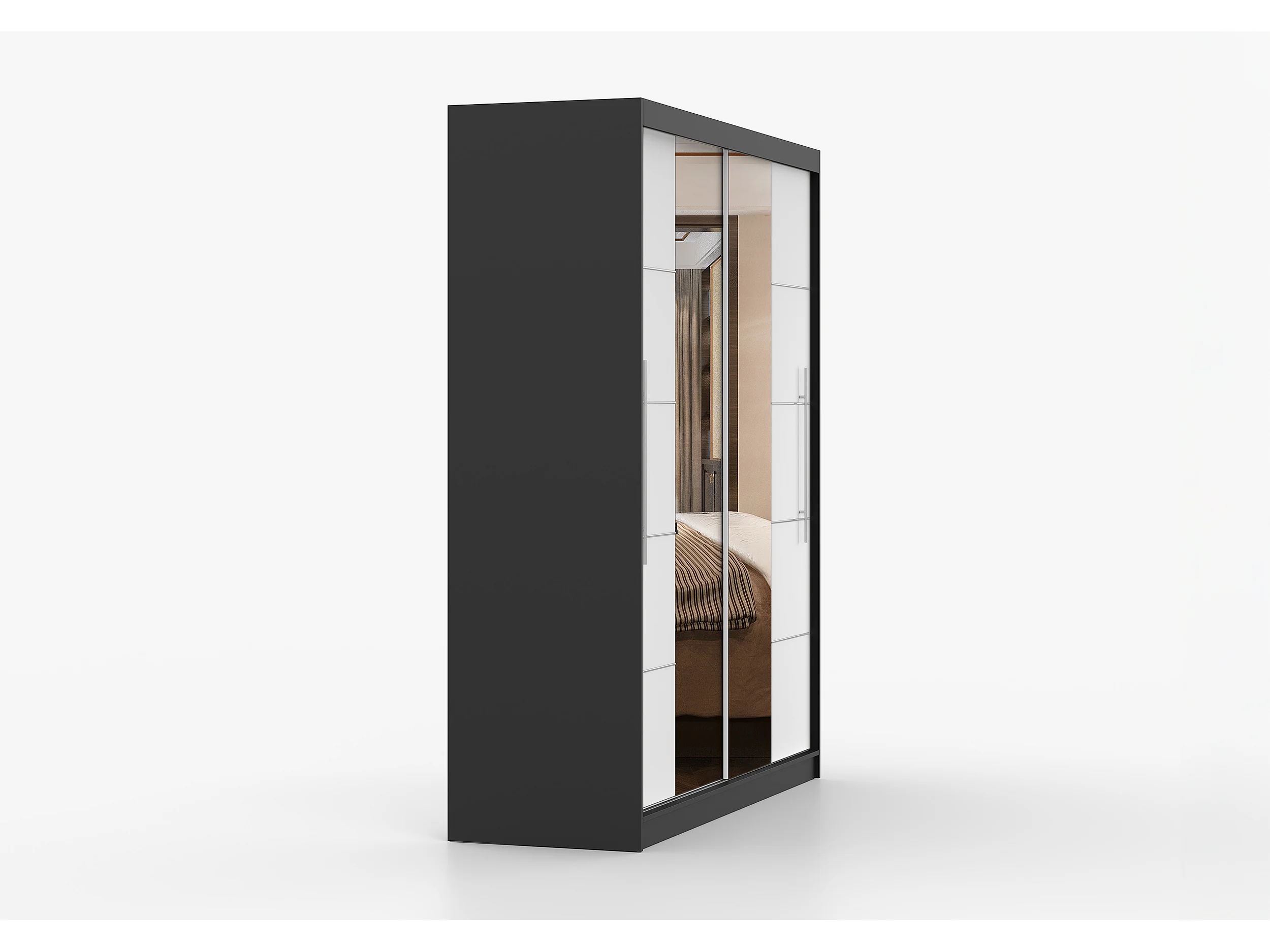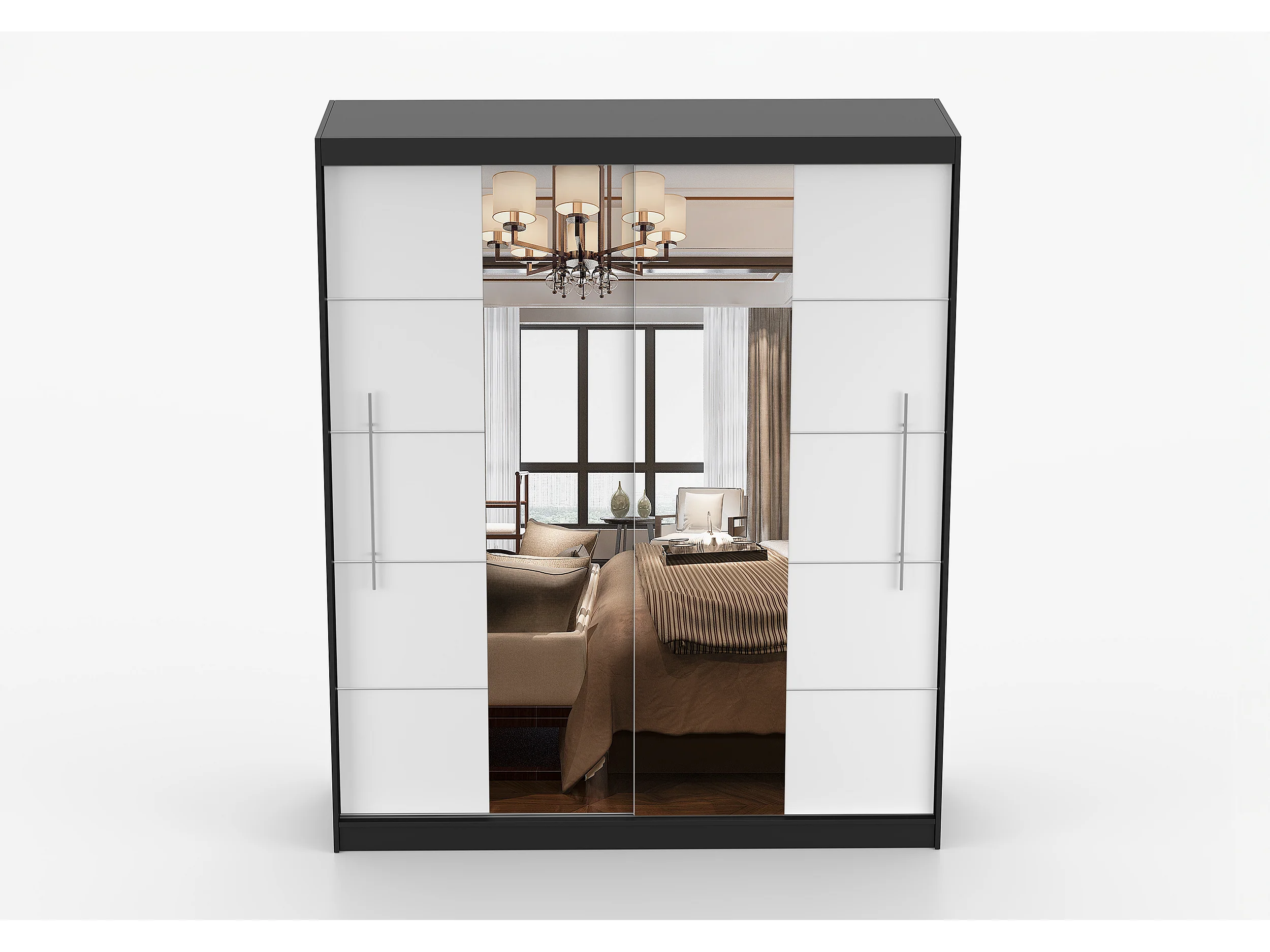 Armoire Orelia 203 cm avec miroir - Noir - Blanc