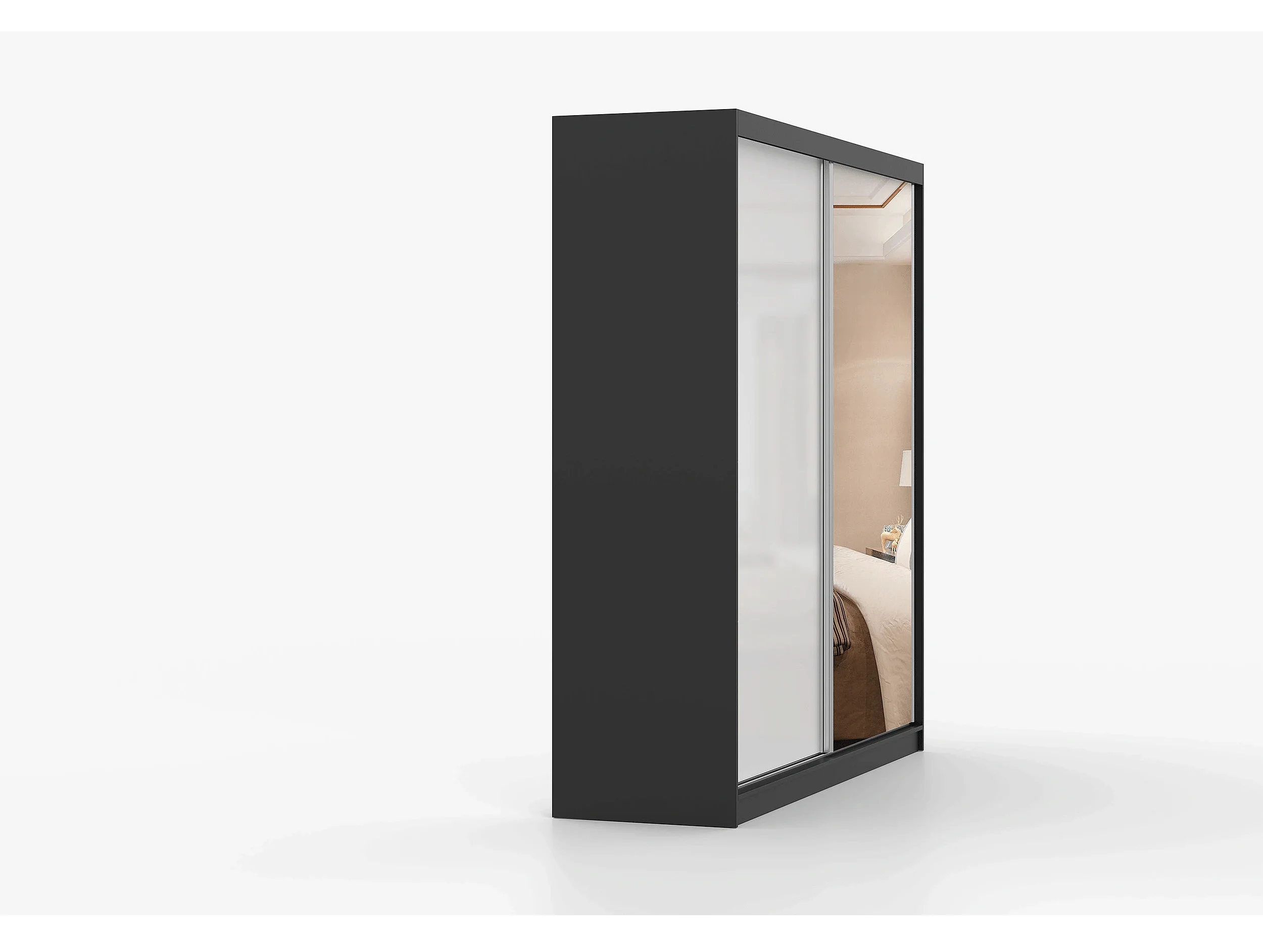 Armoire Orphée 203 cm avec miroir - Noir - Blanc