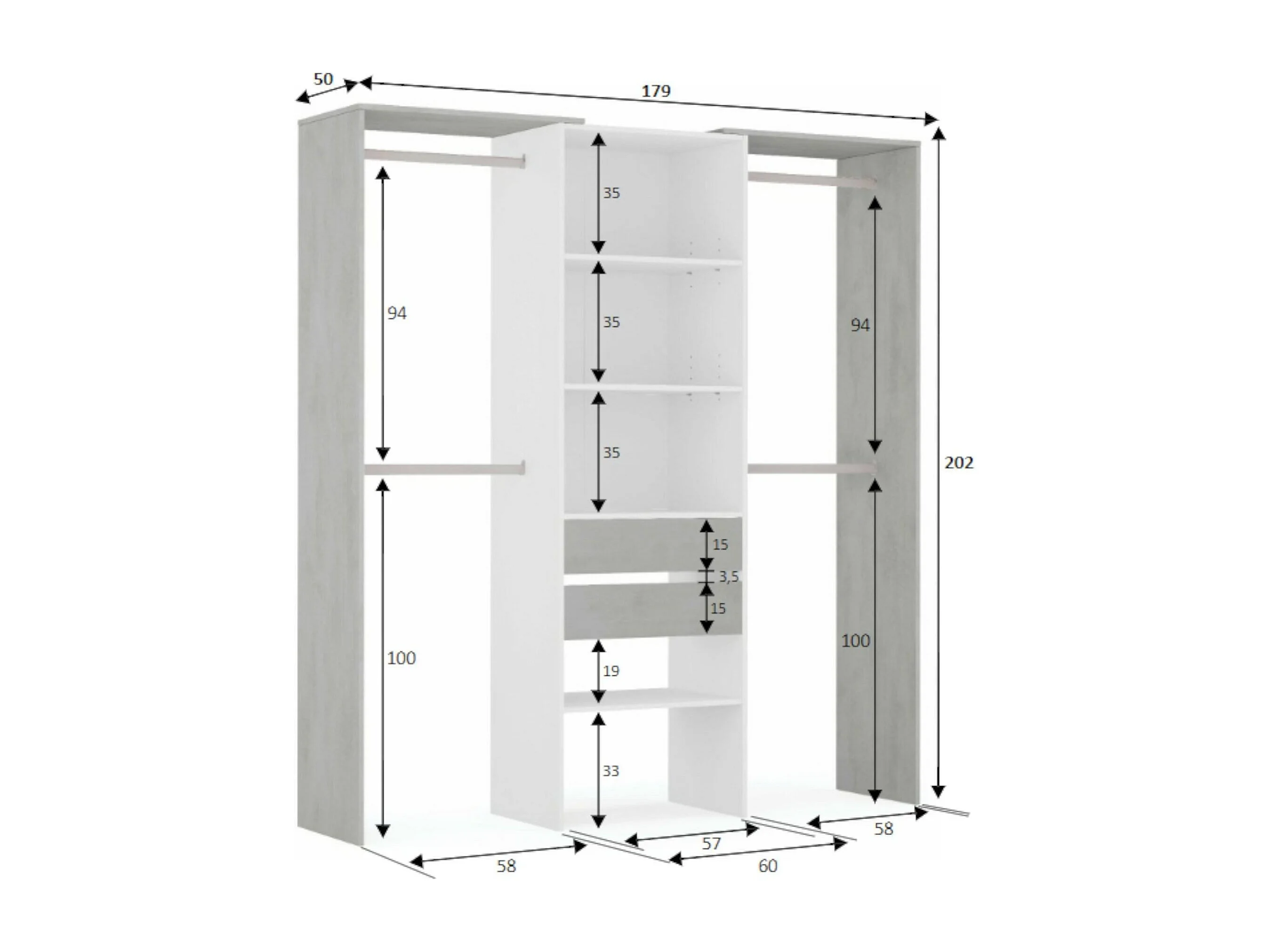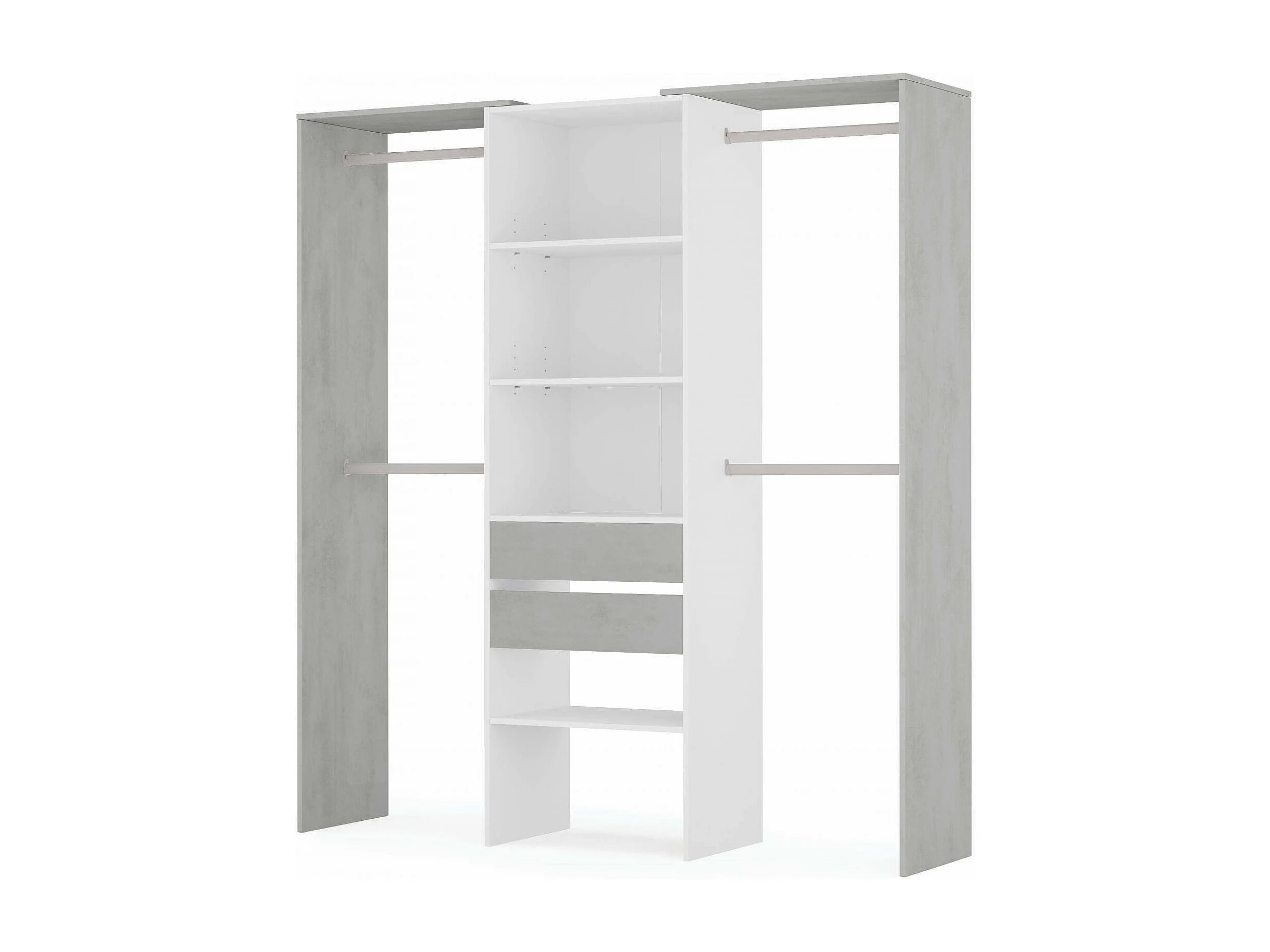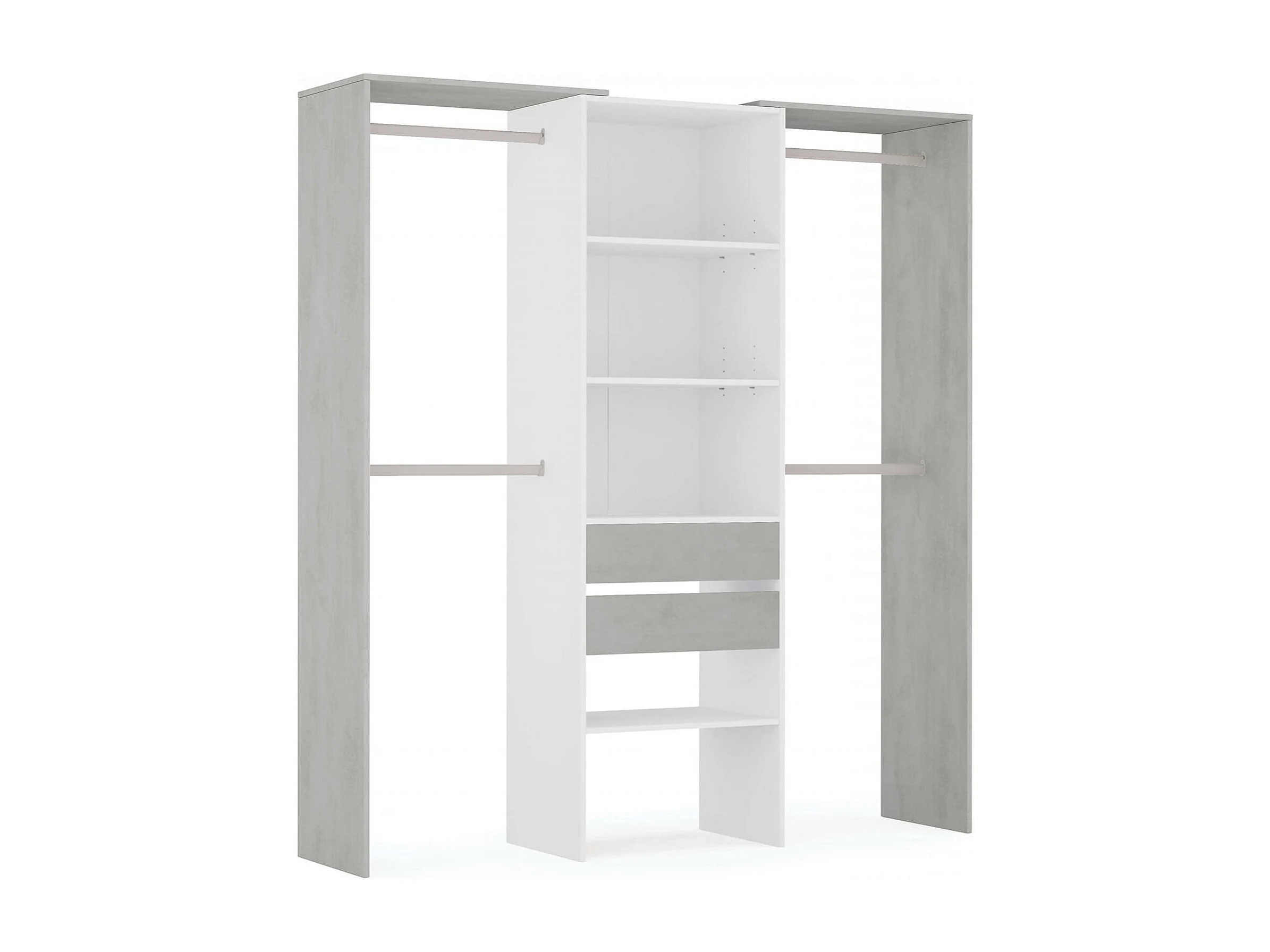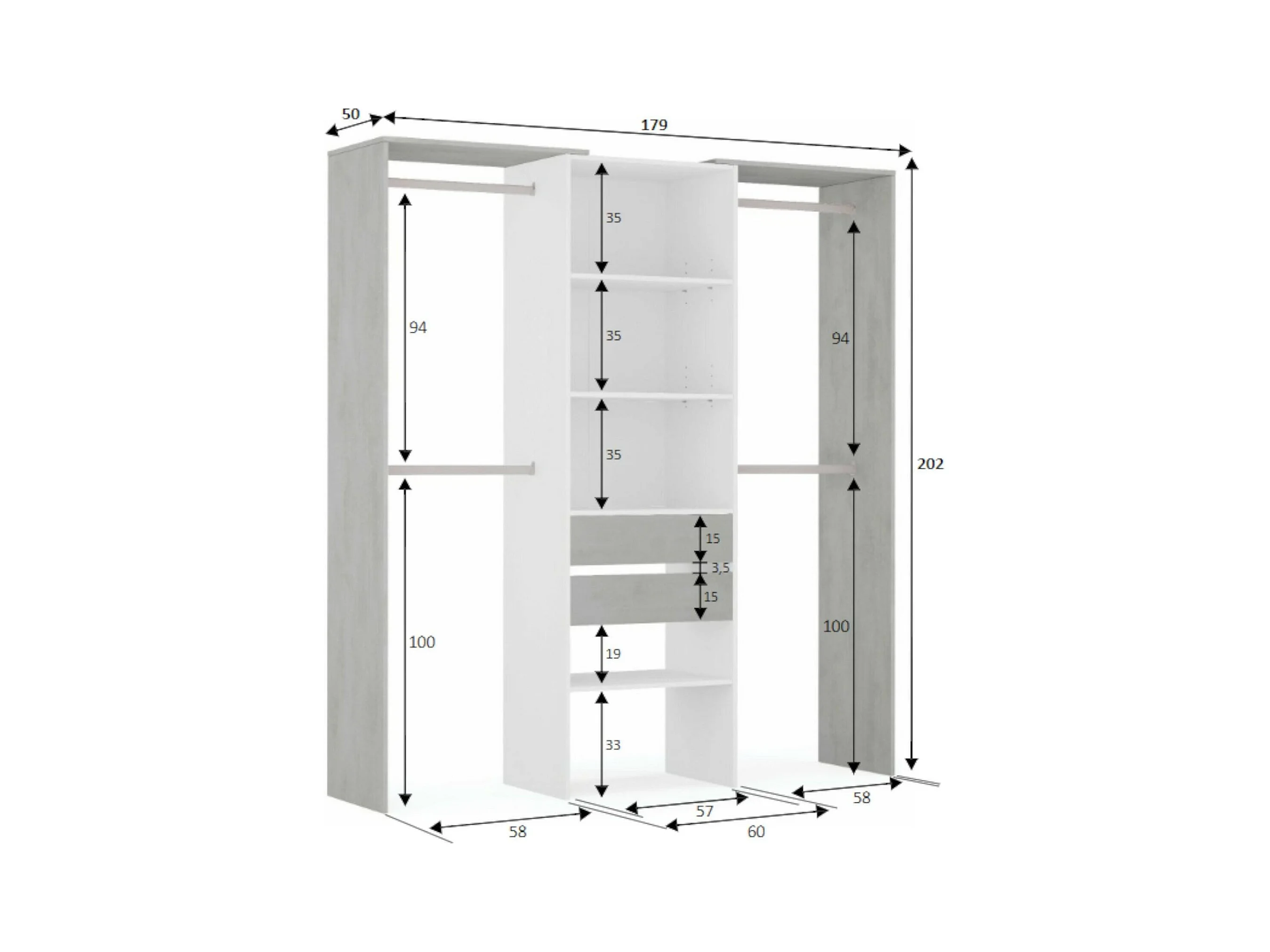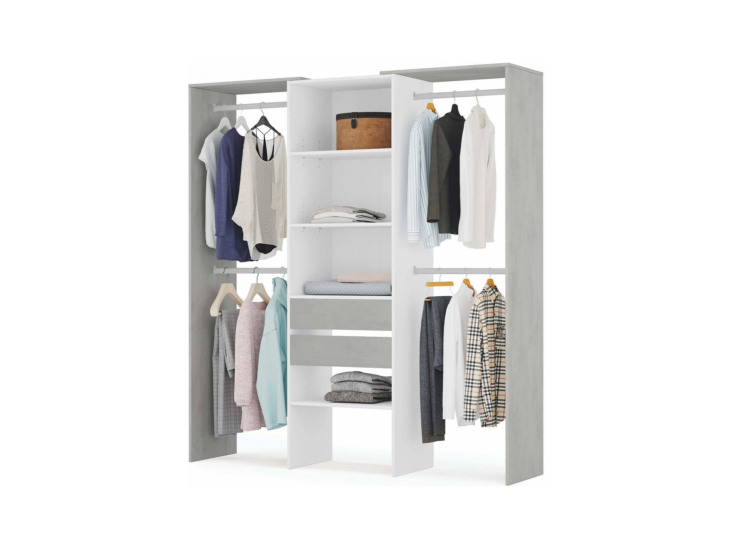 Armoire Dalala, Structure pour dressing, Armoire ouverte sans portes, Dressing, 179x50h202 cm, Blanc et Ciment