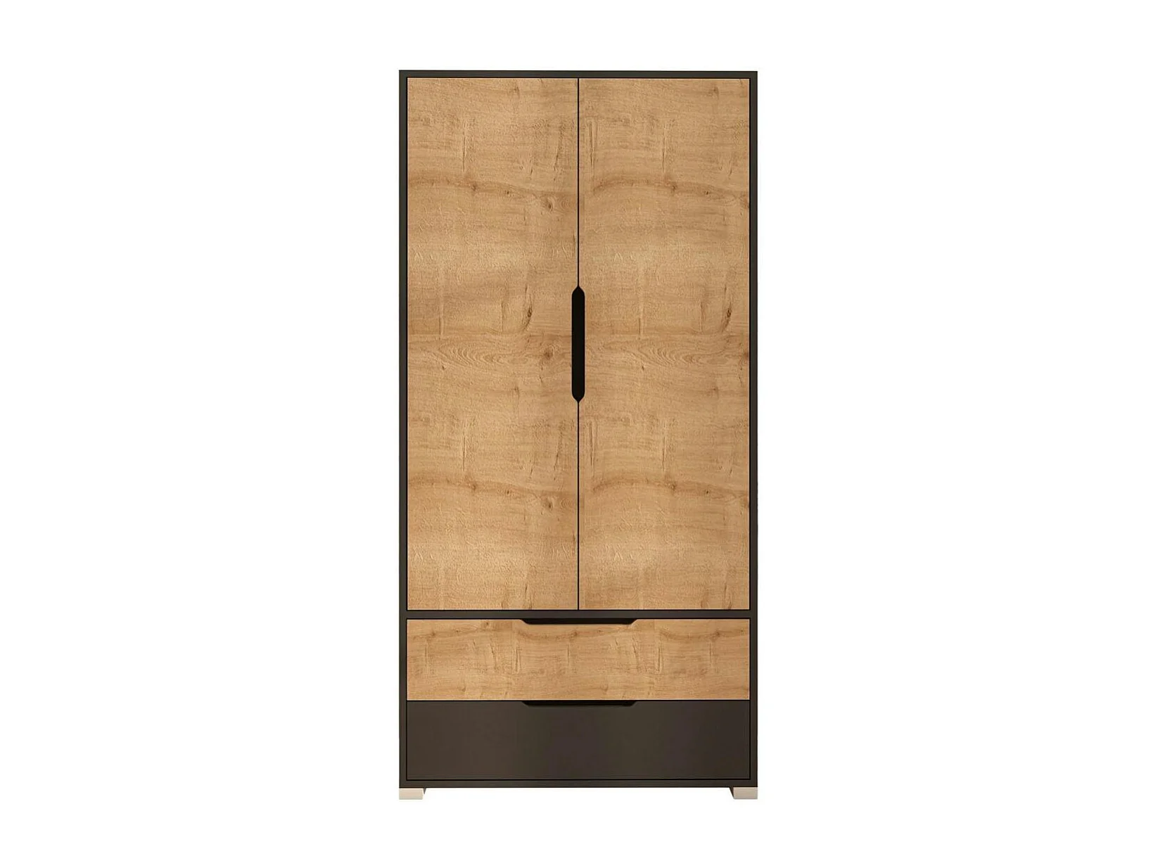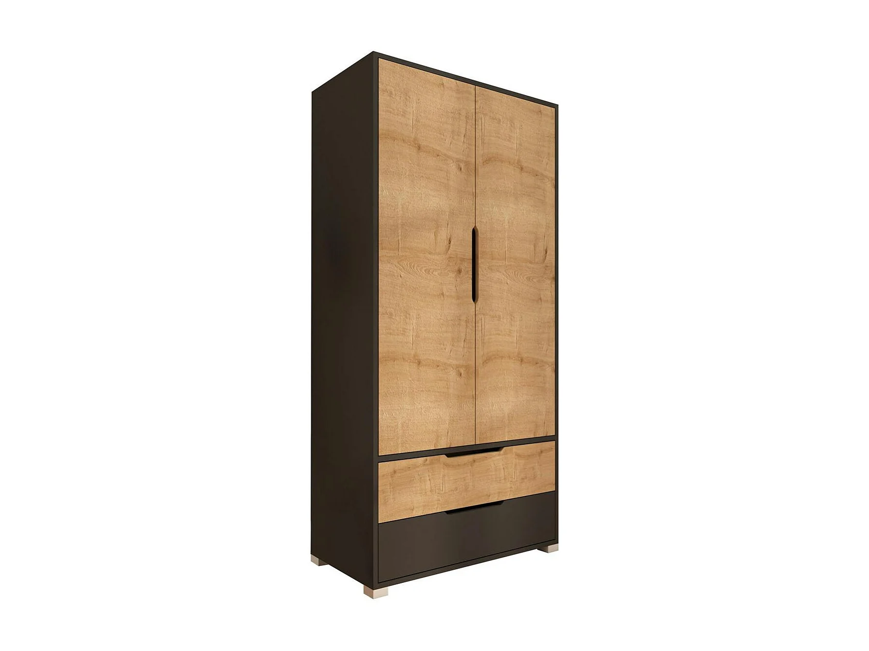 Armoire penderie 2 portes effet bois et anthracite BYRON