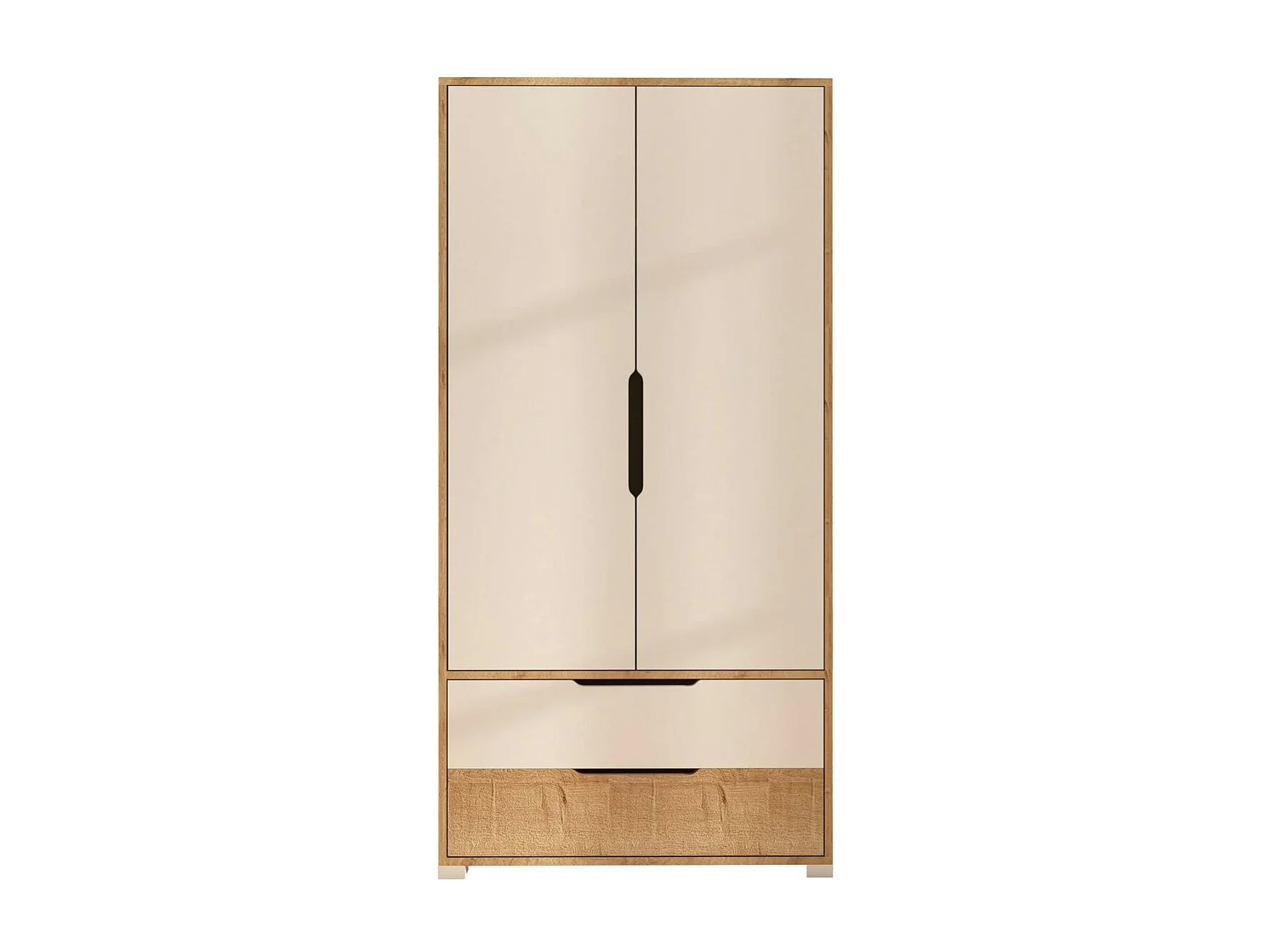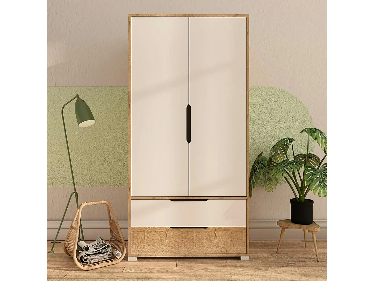 Armoire penderie 2 portes effet bois et blanc BYRON