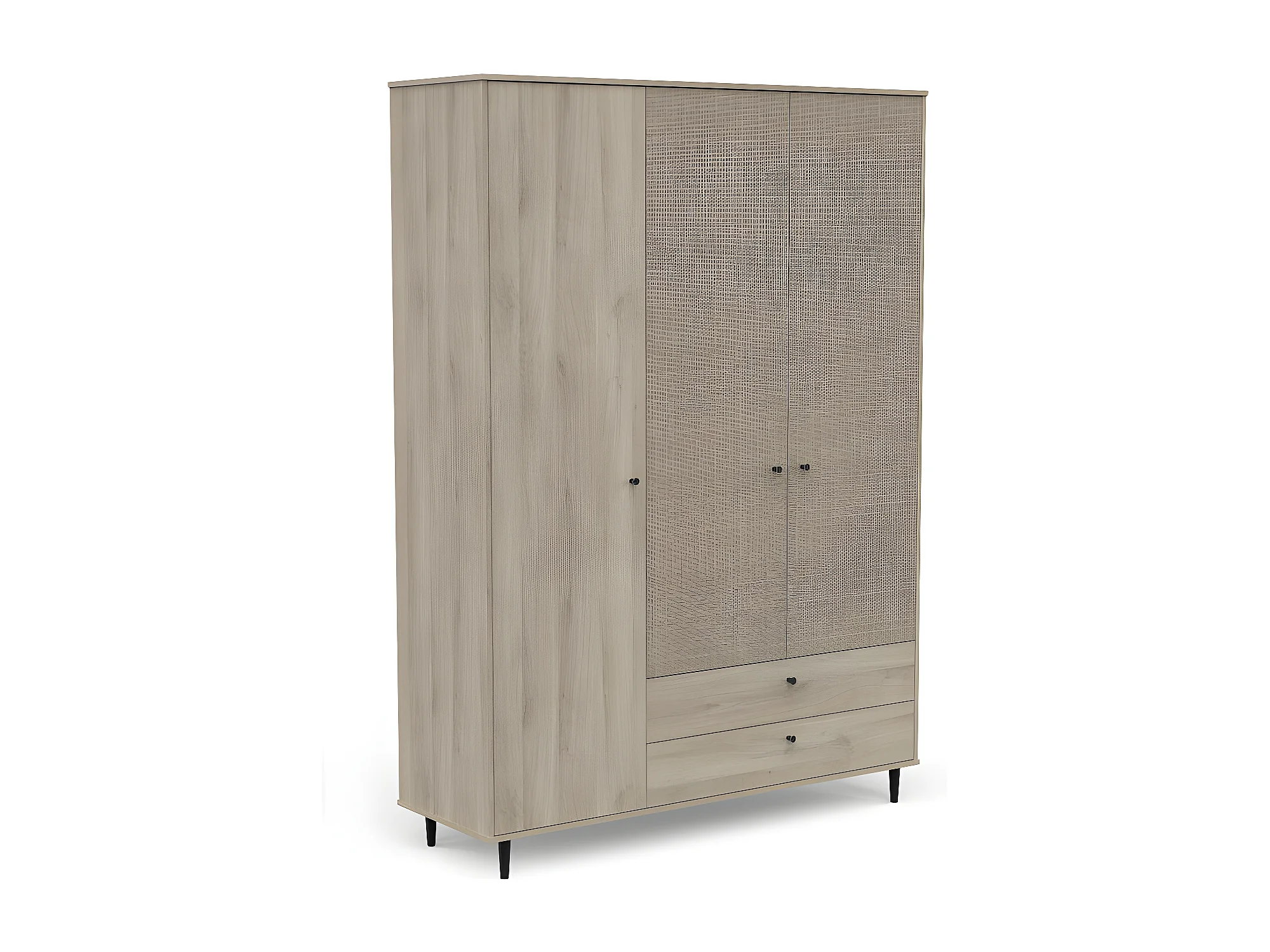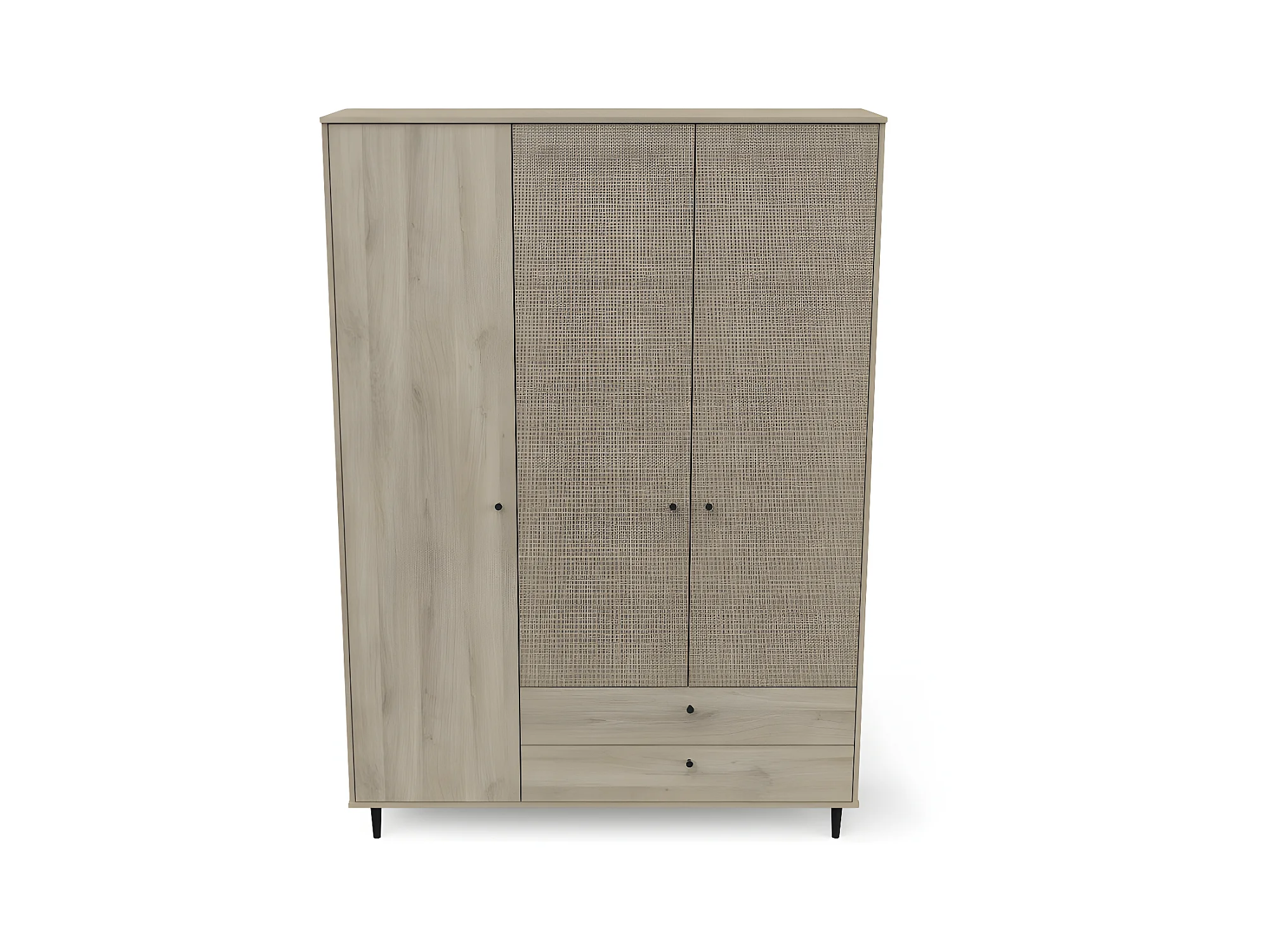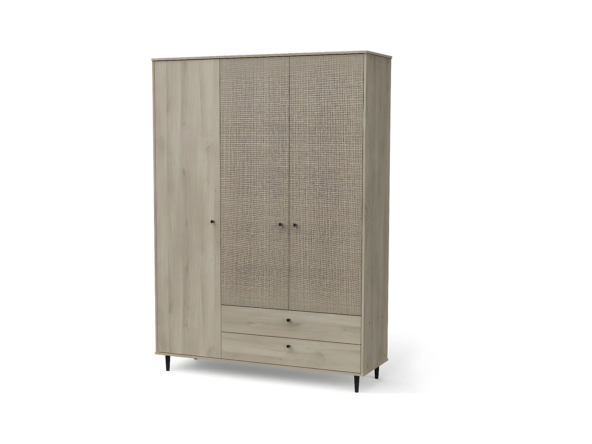 Armoire penderie 3 portes battantes + 2 tiroirs Chêne clair - GONSAI - L 141 X l 50 X h 221 cm