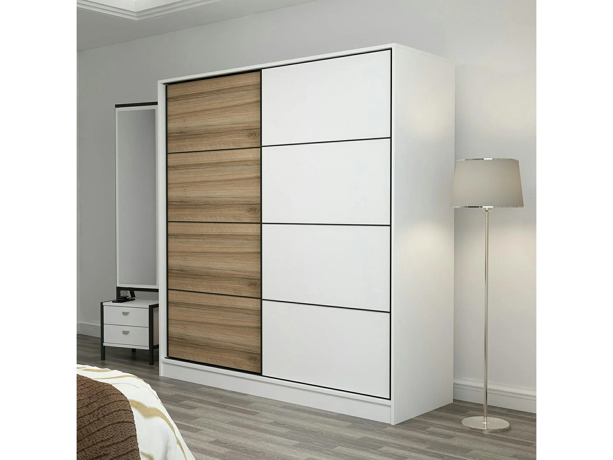 Armoire penderie à portes coulissantes, blanc & effet bois BYRON