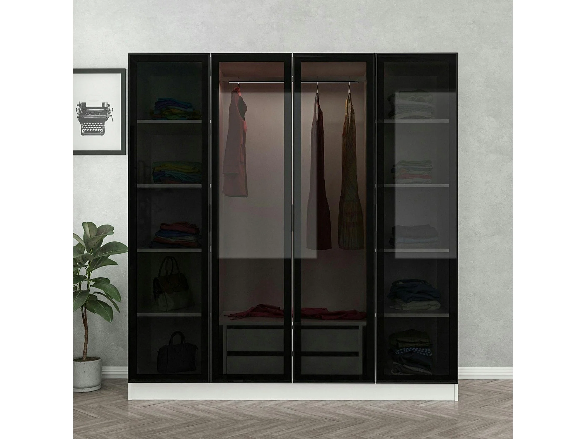 Armoire penderie blanche 4 portes vitrées H 190 cm BYRON