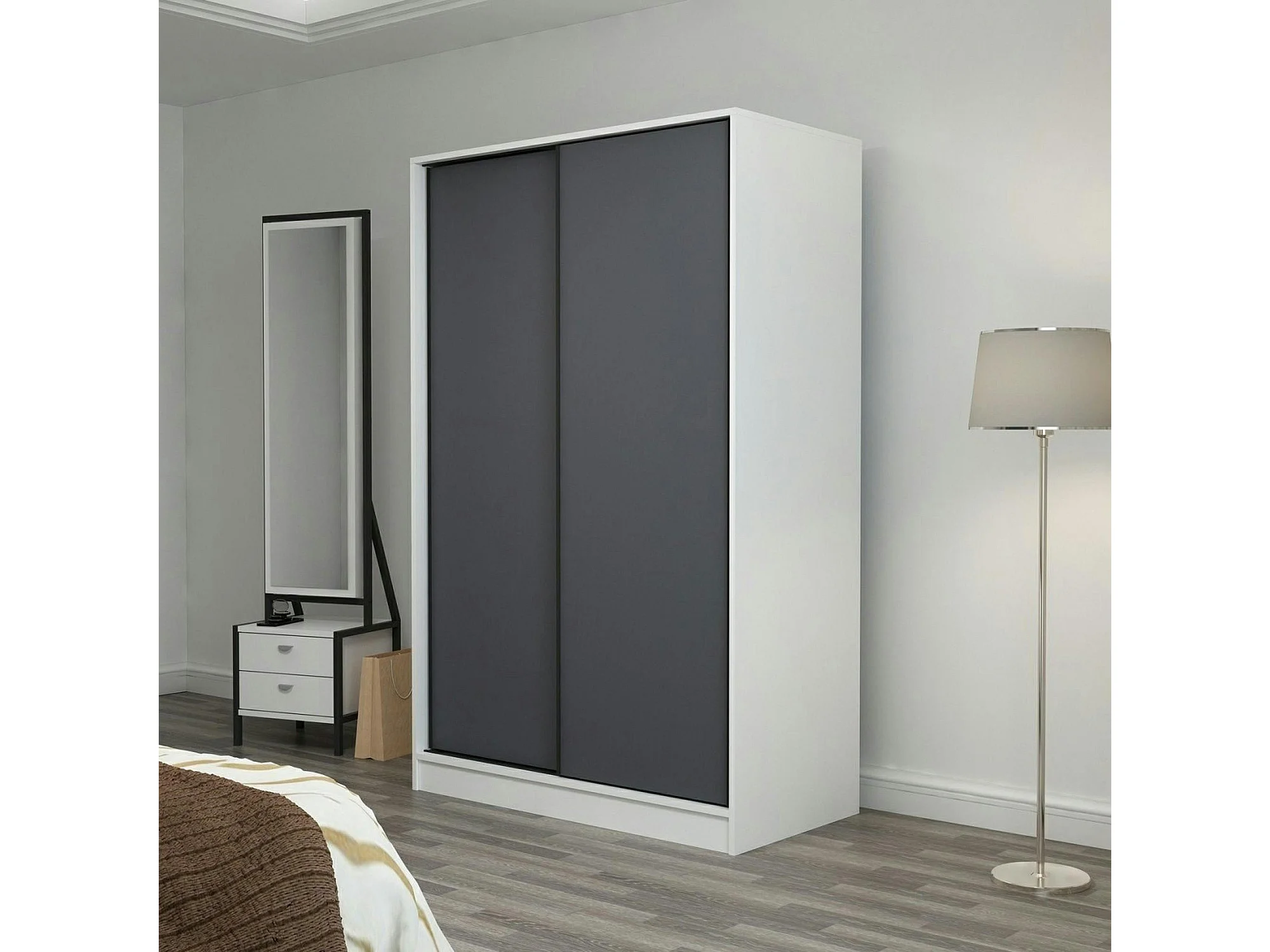 Armoire penderie blanche - portes coulissantes grises BYRON