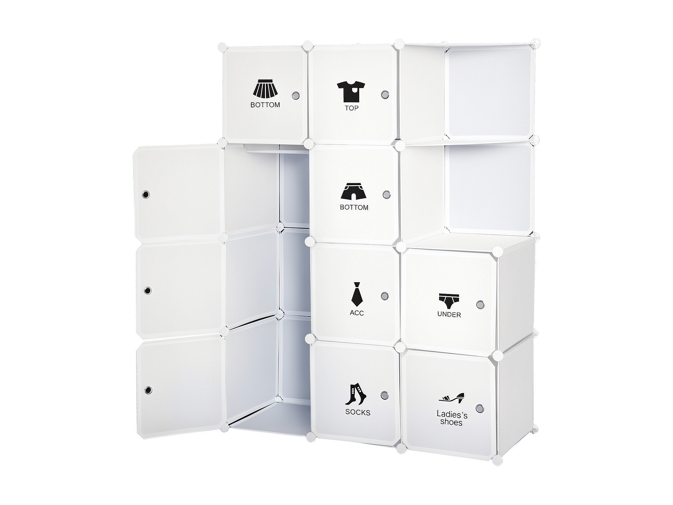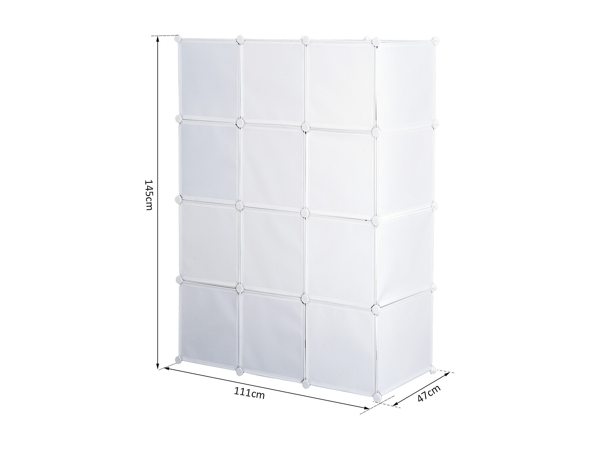 Armoire penderie cube multi-rangements 10 cubes + 2 étagères + autocollants décoratifs 111L x 47l x 145H cm blanc