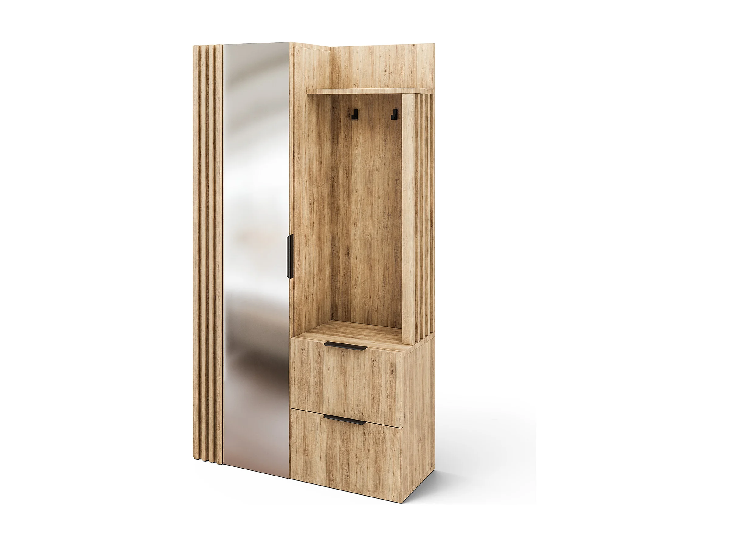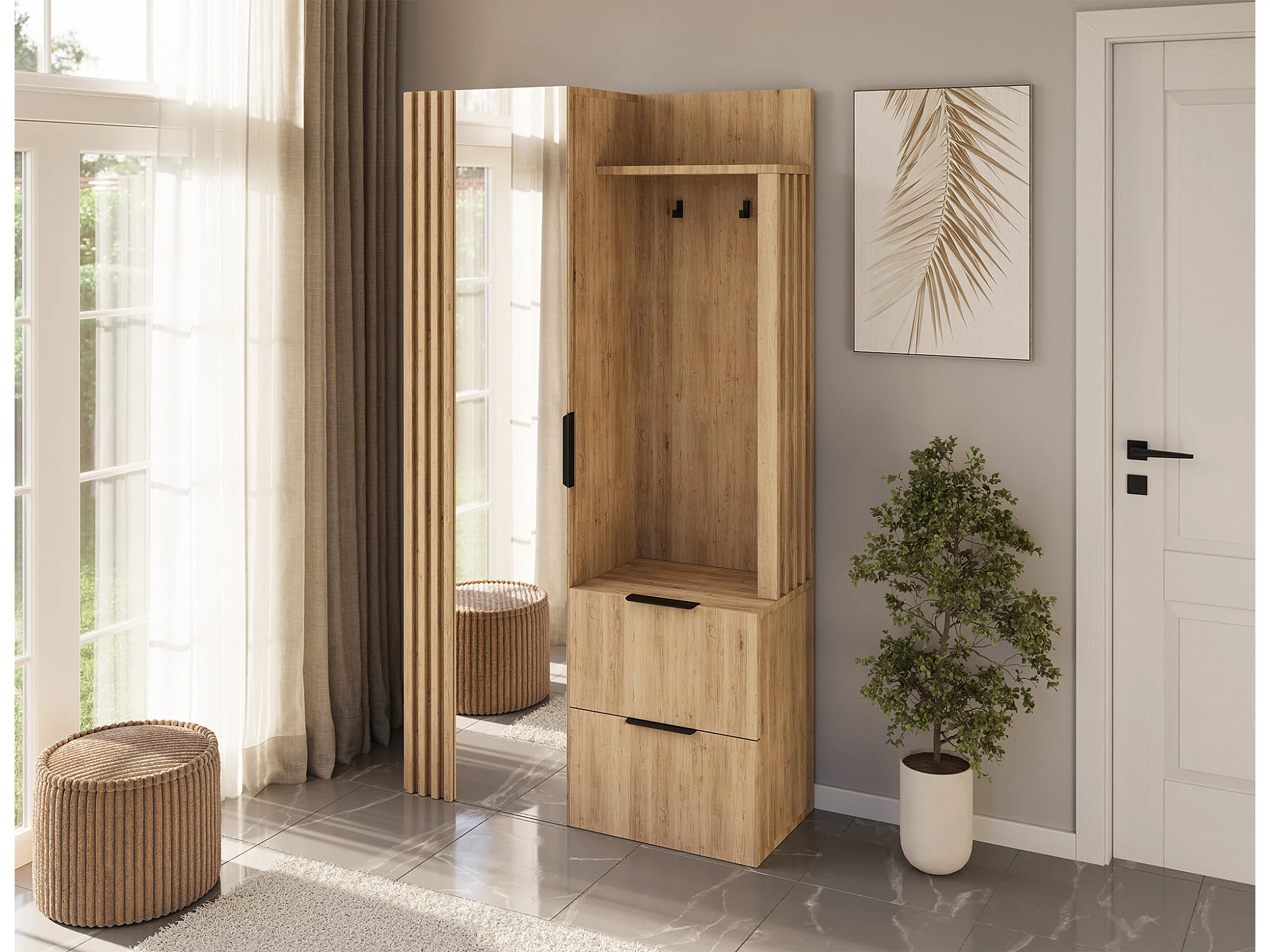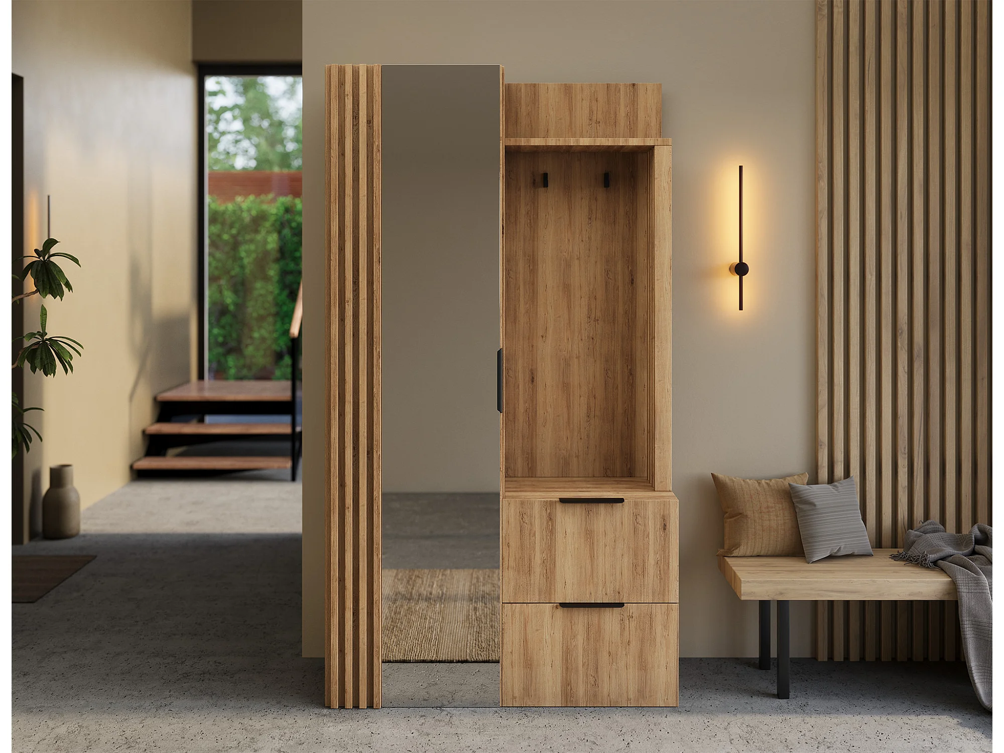 Armoire penderie d'entrée RIGANY 100cm - Chêne artisan et miroir