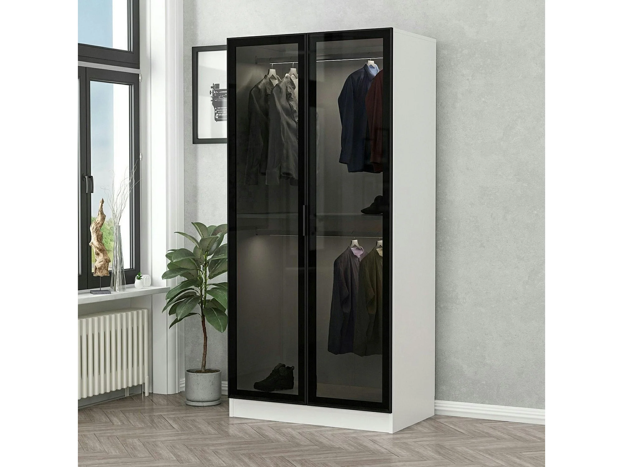 Armoire penderie design blanche - 2 portes vitrées BYRON