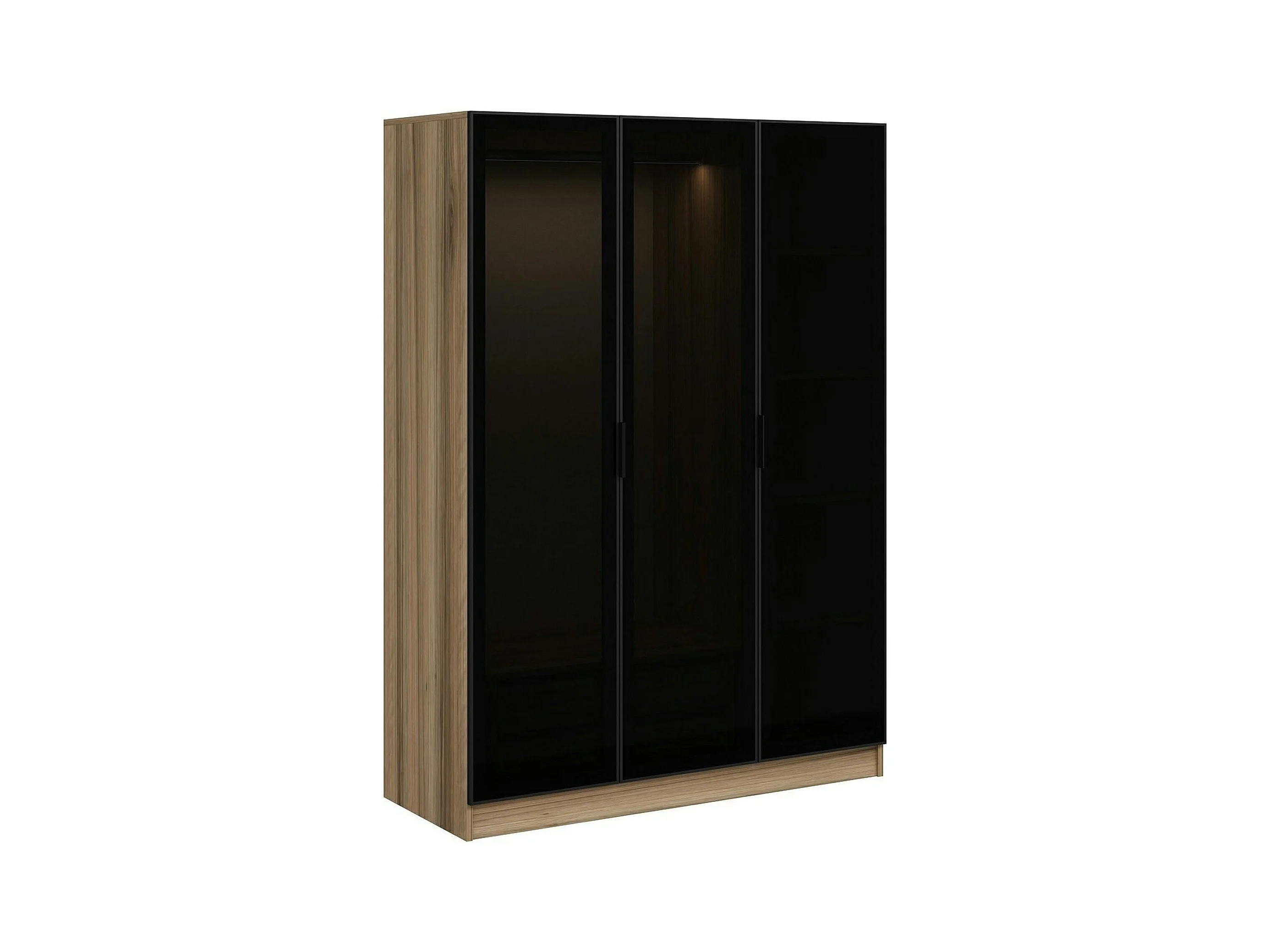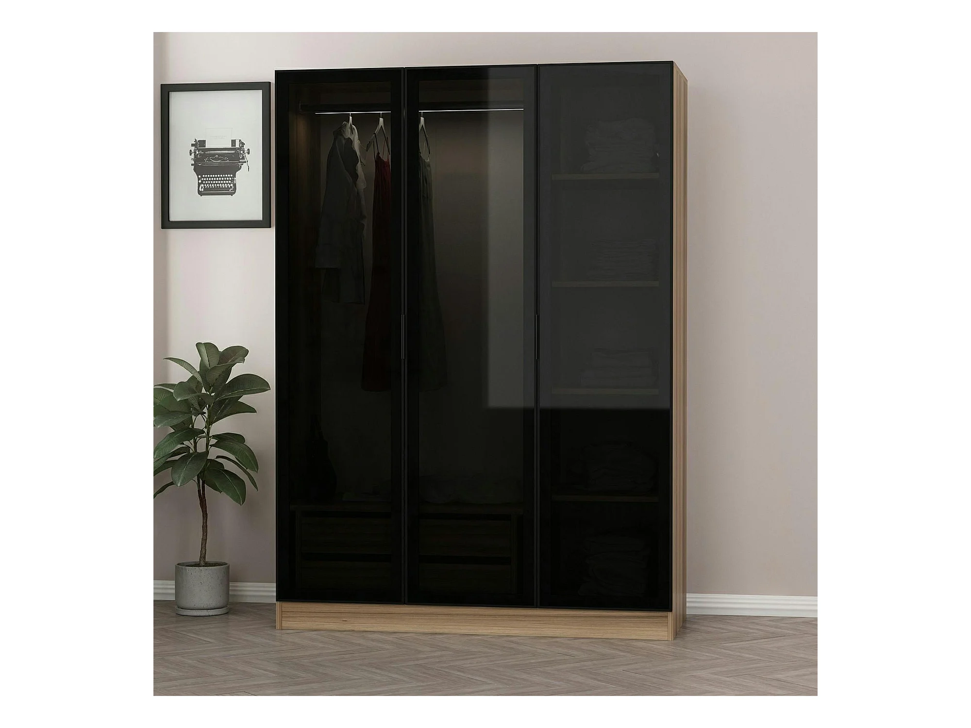 Armoire penderie design effet bois, 3 portes vitrées BYRON