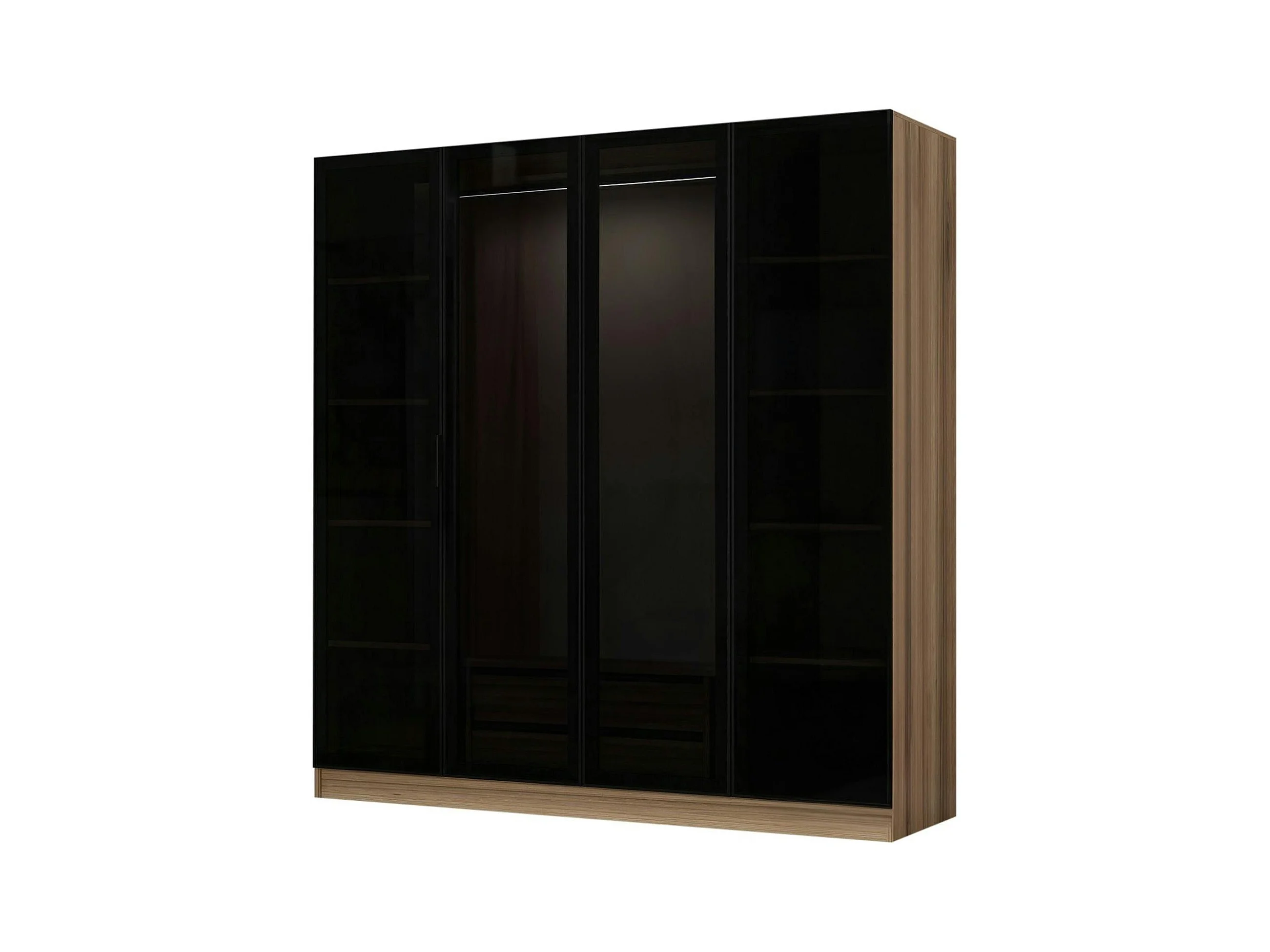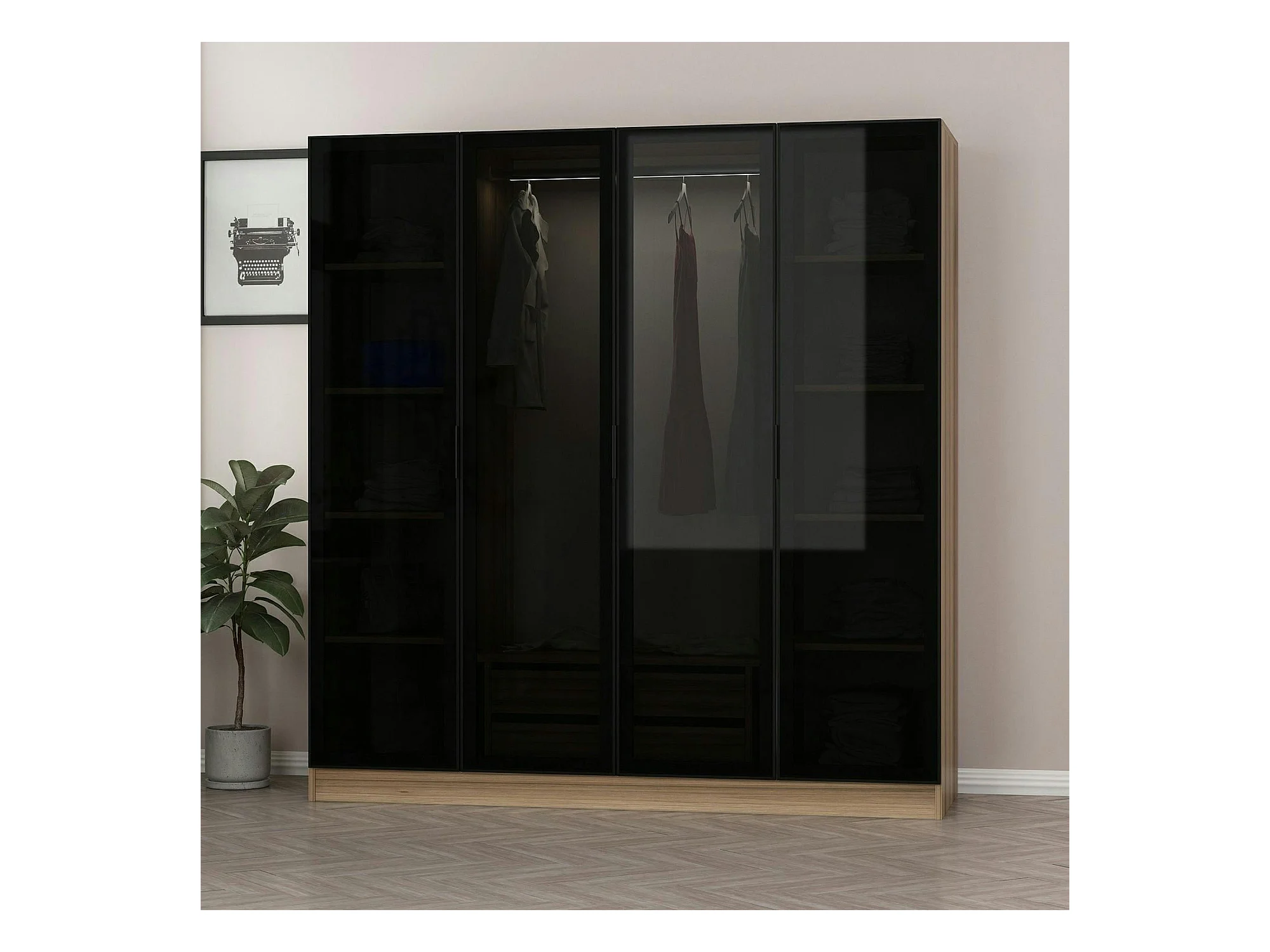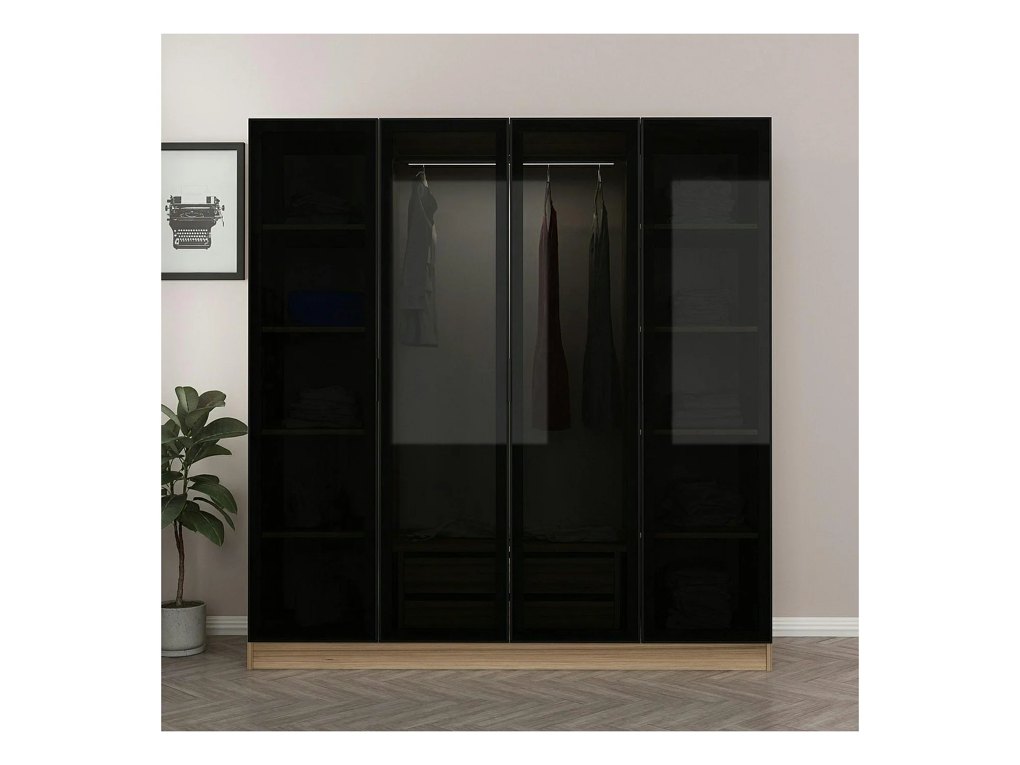 Armoire penderie design effet bois 4 portes verre H 210 cm BYRON