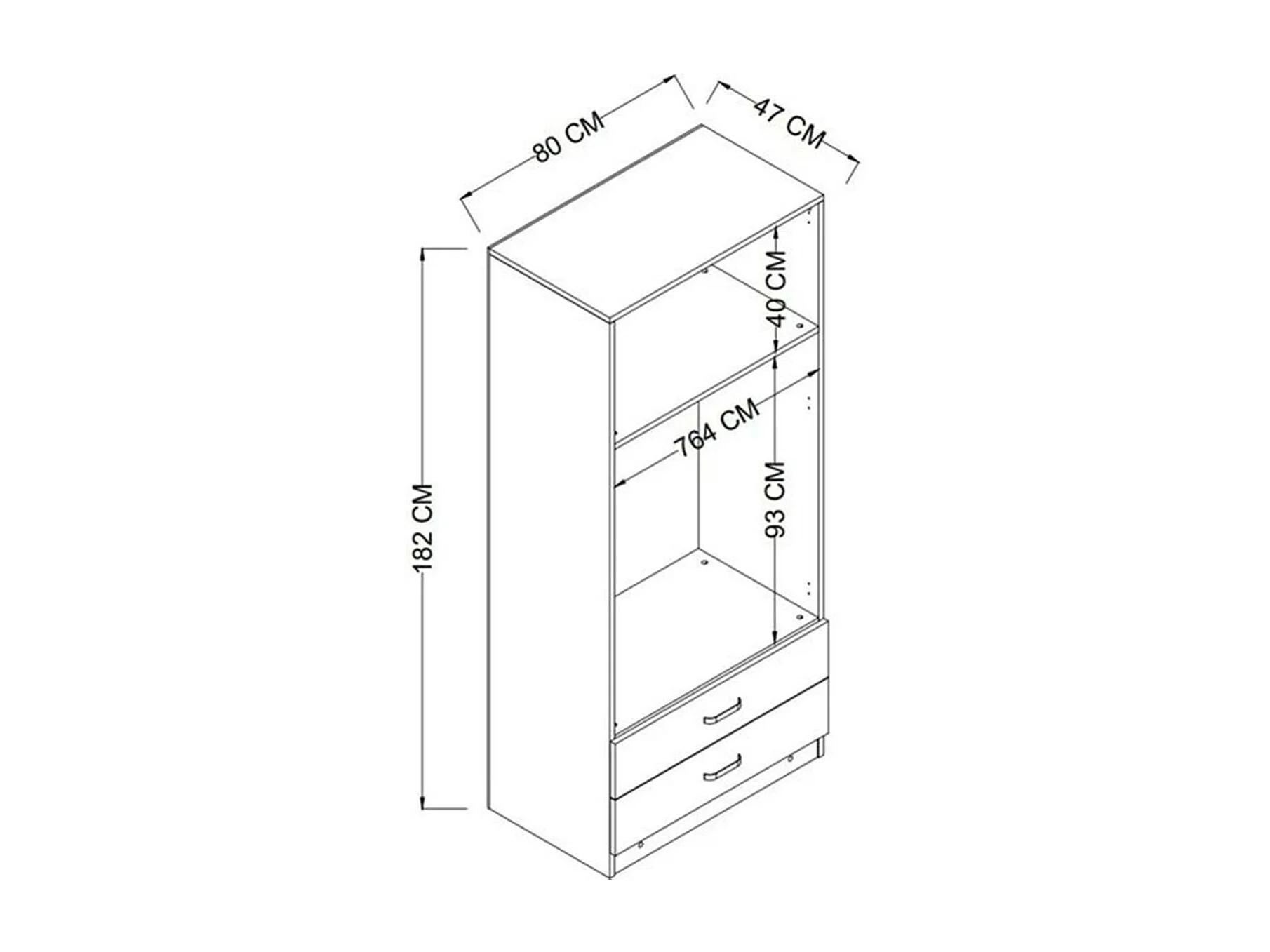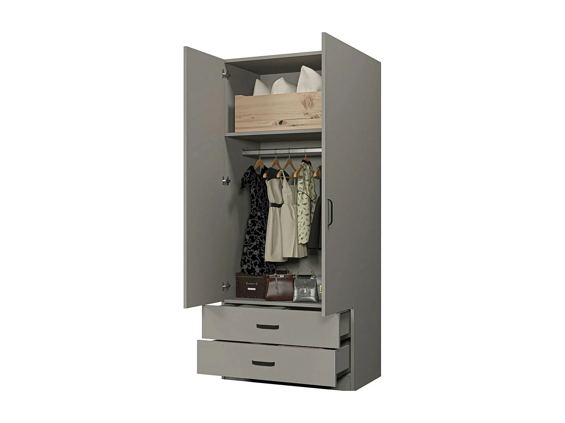 Armoire penderie grise 2 portes 2 tiroirs 80 cm BYRON