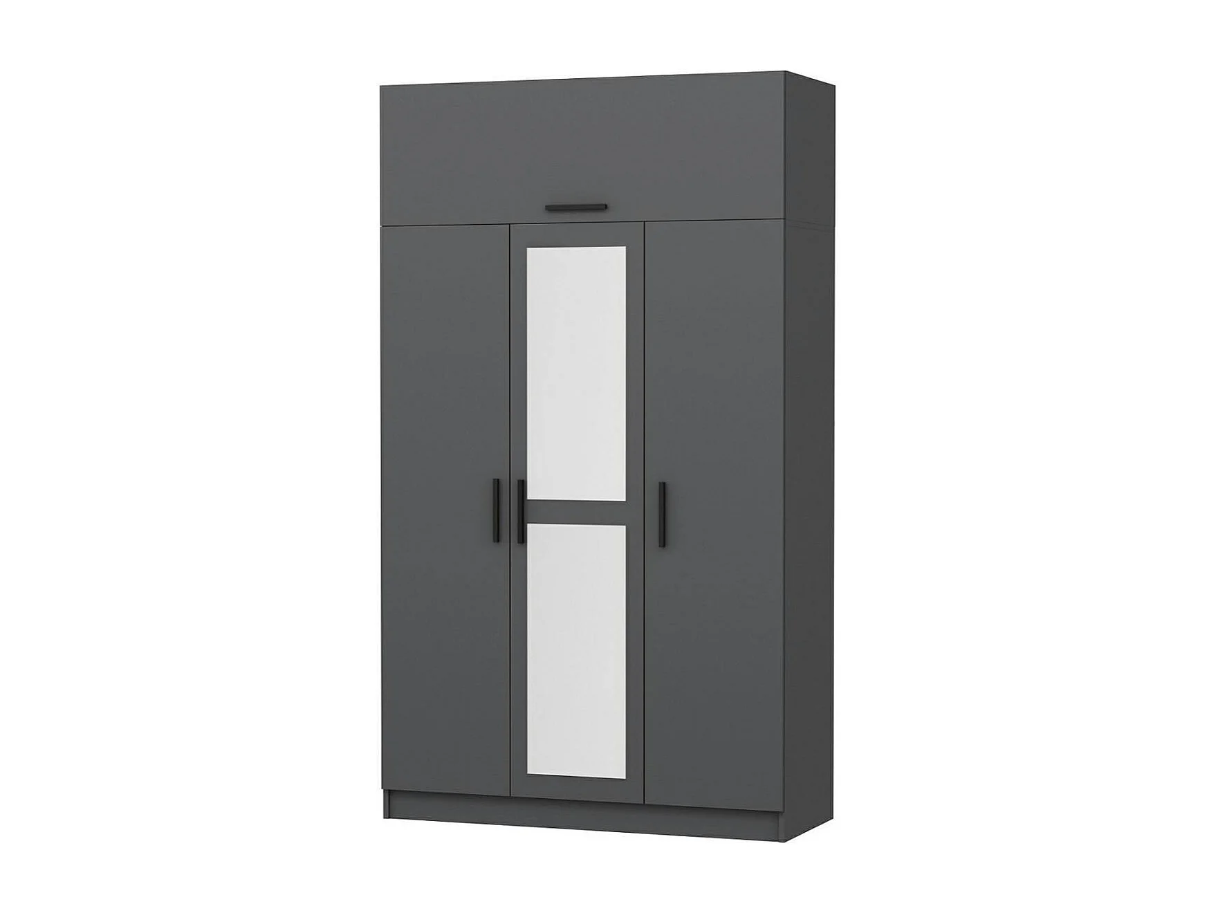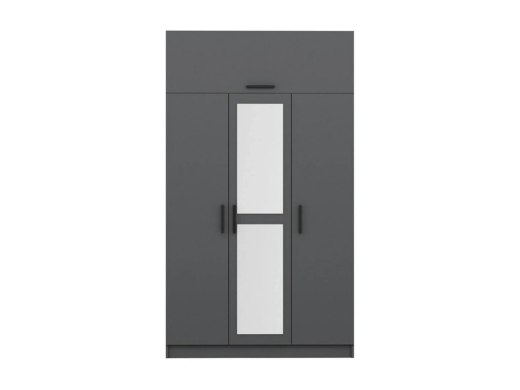 Armoire penderie grise 4 portes et 2 miroirs BYRON