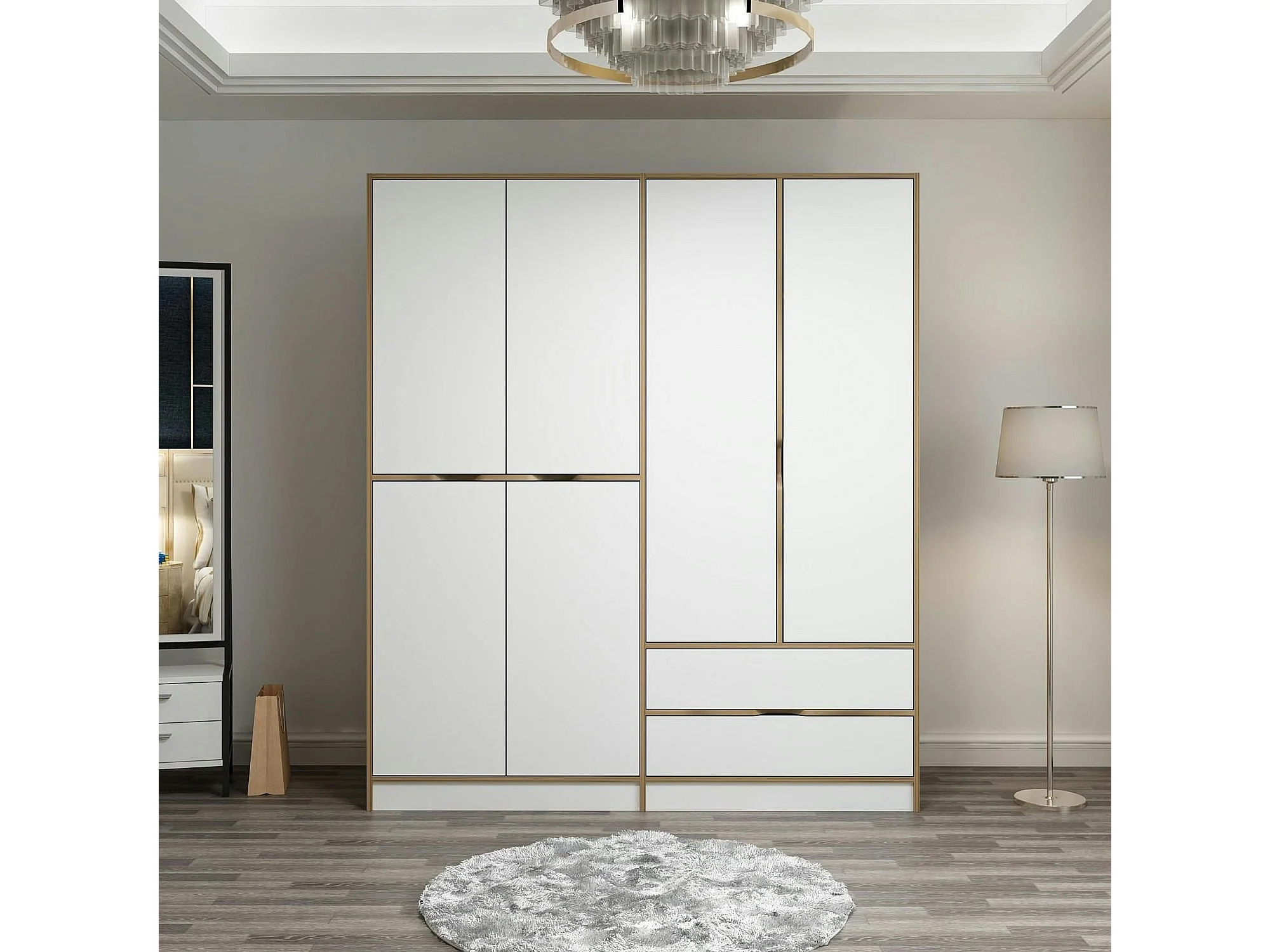 Armoire penderie moderne - 6 portes blanches L.185 cm BYRON