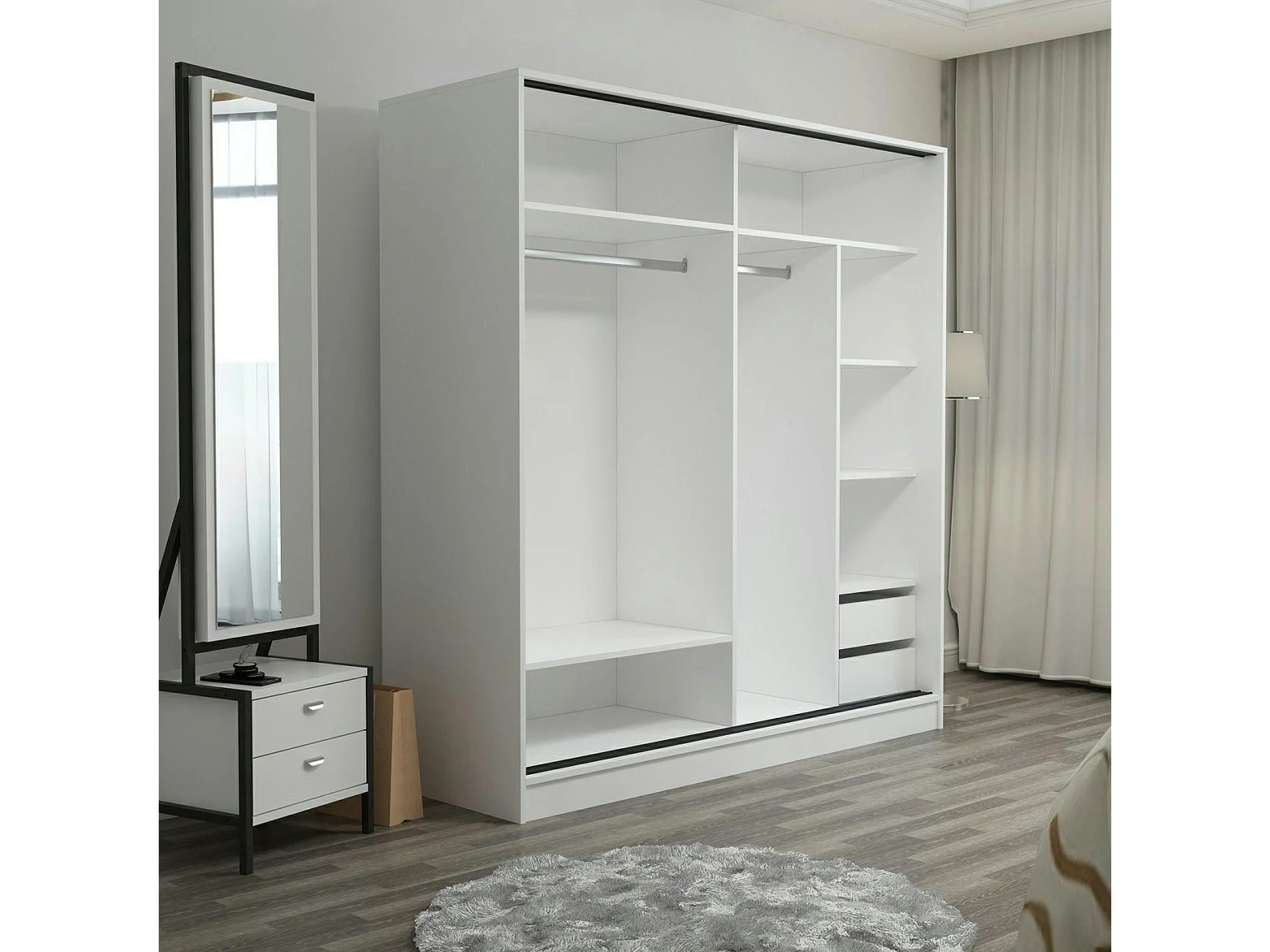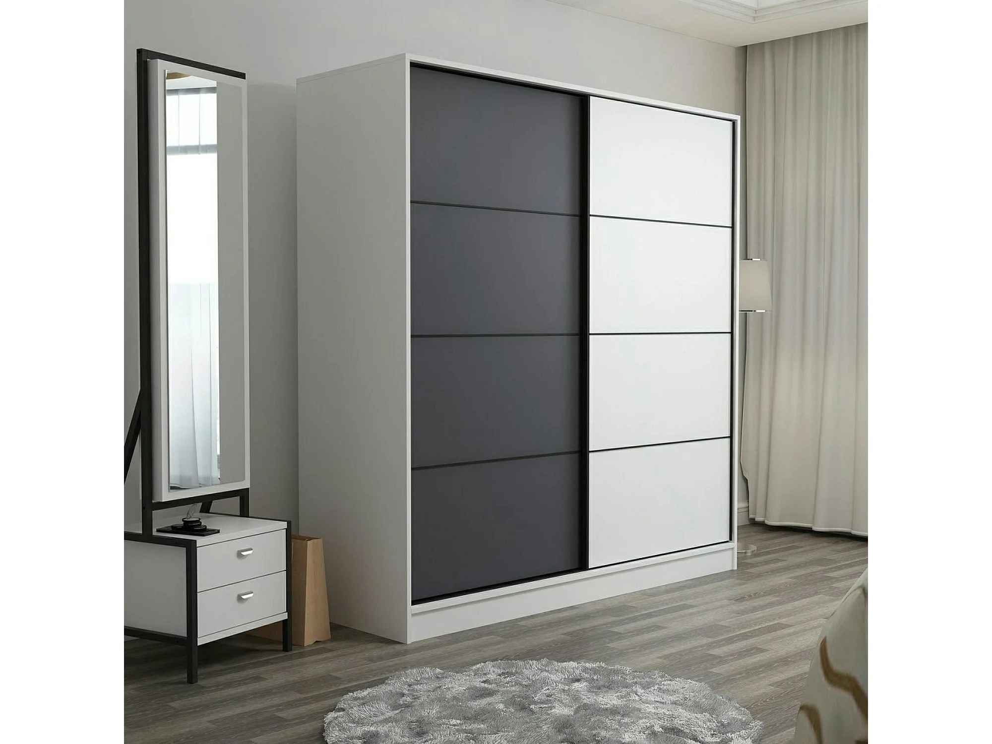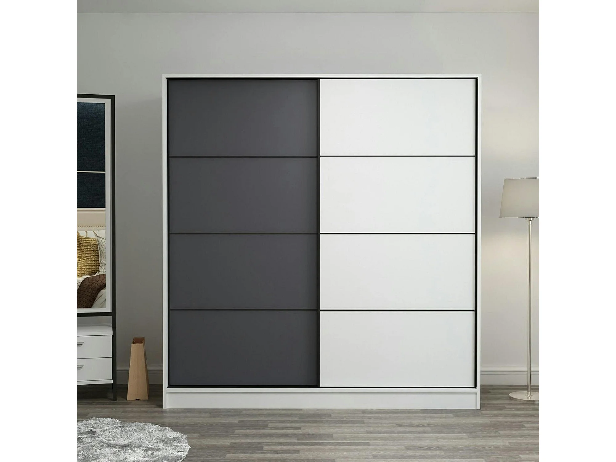 Armoire penderie moderne blanc et gris L. 180 cm BYRON
