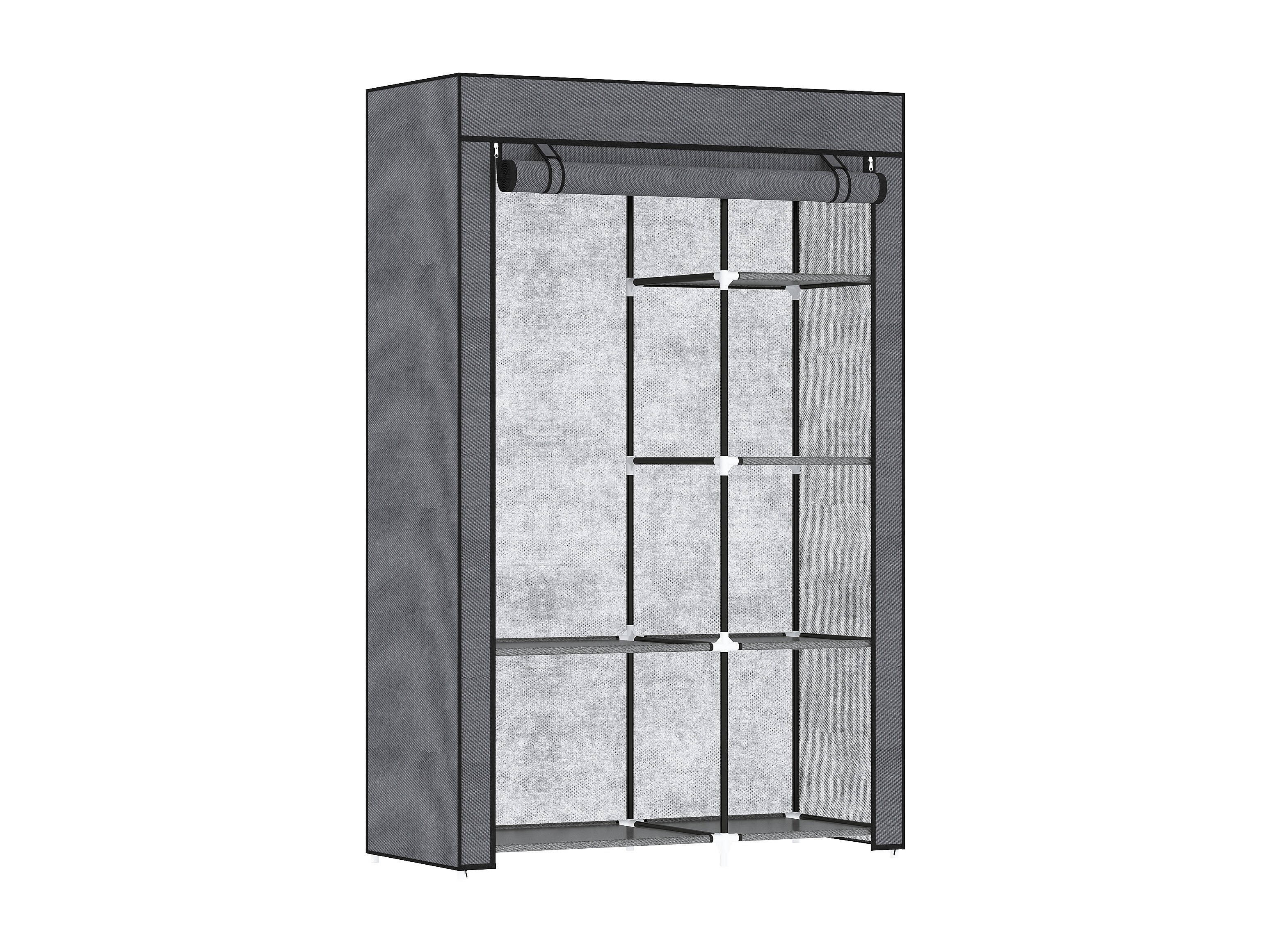 Armoire penderie multi-rangement - 8 étagères, 2 barres - dim. 125L x 43l x 162,5H cm - acier noir non tissé gris